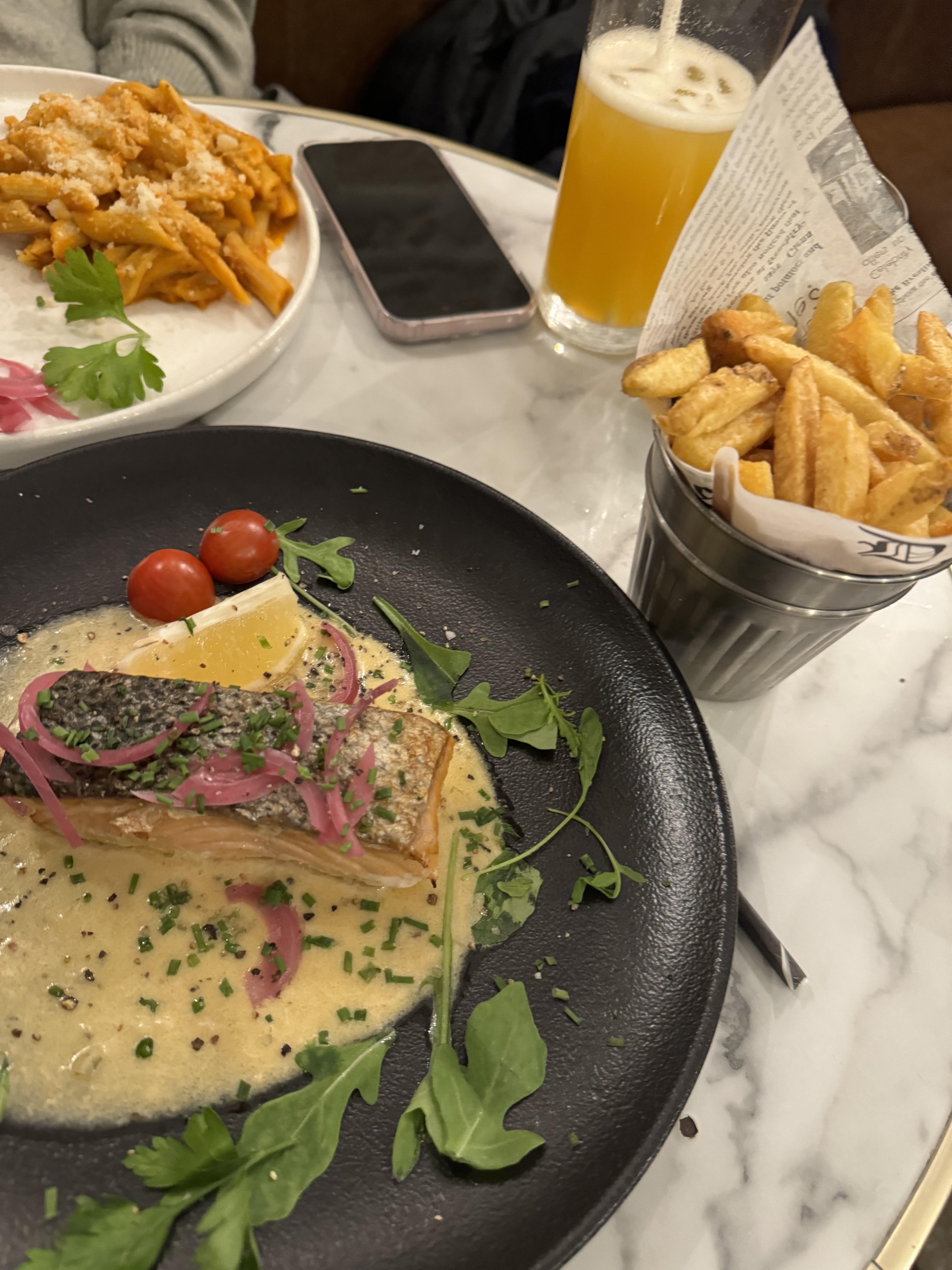Formule intéressante pour le midi. Bon accueil, assez joli. Mon plat de saumon était bon, le moelleux au chocolat aussi mais pas fait maison selon moi. C'est dommage en restauration, mais ça justifie le prix de la formule j'imagine. J'y retournerai pour un midi, pause boulot, mais ça ne sera pas un restaurant coup de cœur pour une soirée.