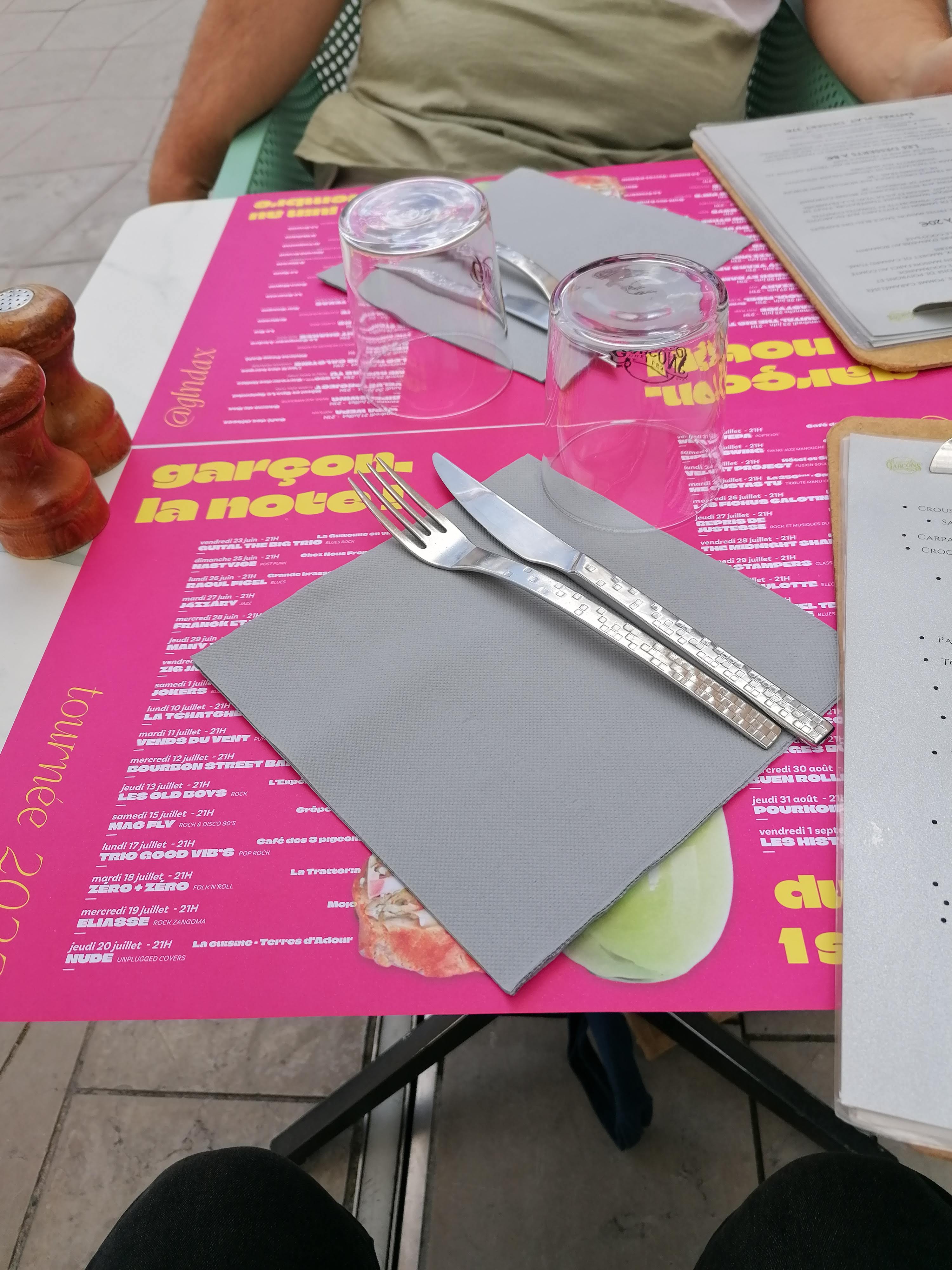 Nous avons été faire un repas entre collègues Chez les garçons a Dax. Le repas était bon, le service tout à fait acceptable, mais le plus était l'ambiance de ce lieu : un groupe très dynamique et performant jouait dès 21h et jusqu'aux environs de minuit, puis la sono a pris le relais avec brio