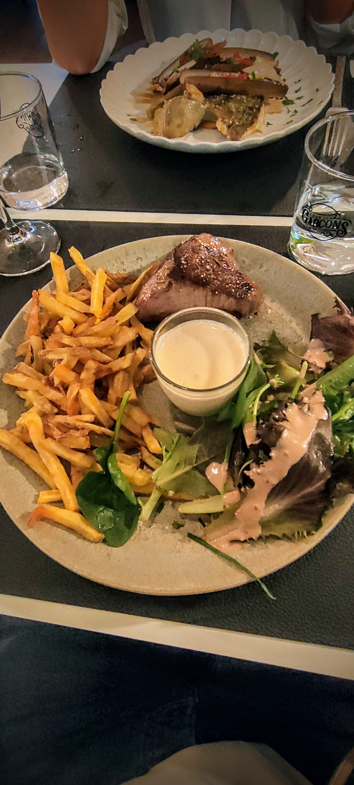 Je mets deux étoiles pour ne pas être excessif mais franchement, belle douille pour un repas en terrasse, faim en partant. Dax regorge de tellement de restaurant extraordinaire, ce serait dommage que ce soit votre seule référence. Personnel sympa, arrêtez vous pour une bière.