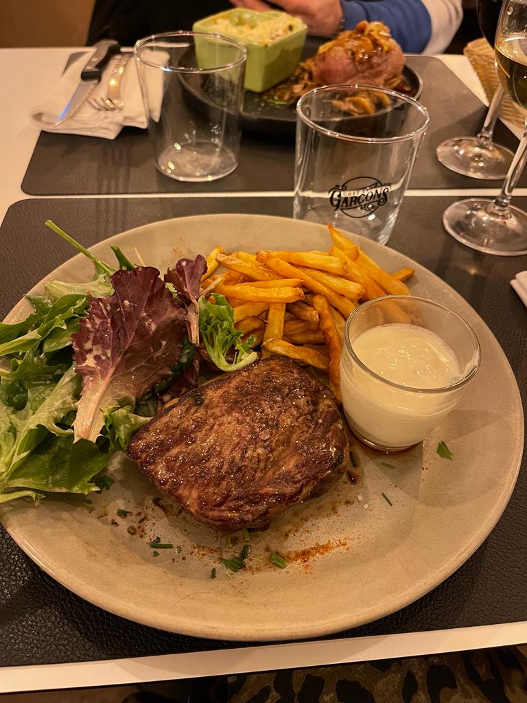 Comment passer une très bonne soirée chez les garçons. Un super accueil, des serveurs très agréables . Nous les remercions pour les conseils avisés pour le choix des vins . Nous nous sommes régalés avec le filet mignon et le pavé de bœuf ! Et les desserts verrine au citron et entremet au chocolat tout juste succulent. Nous validons la cuisine du jour et produits frais. Petit bémol , pas mal d'attente pour le plats .