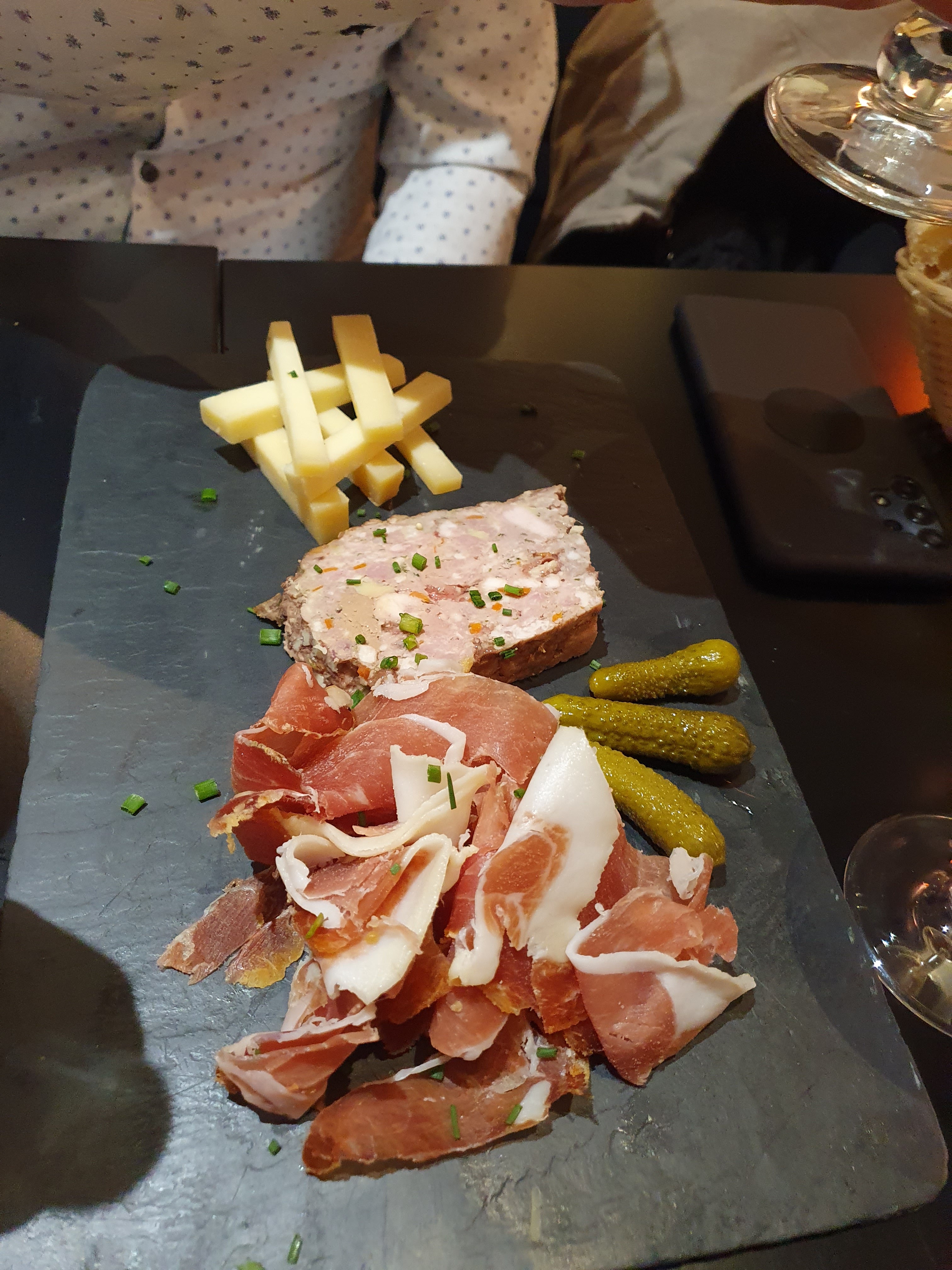 Bien mais pas énorme en quantité, surtout le saucisson (5 tranches très fines). Vin moyen à bon mais trop cher