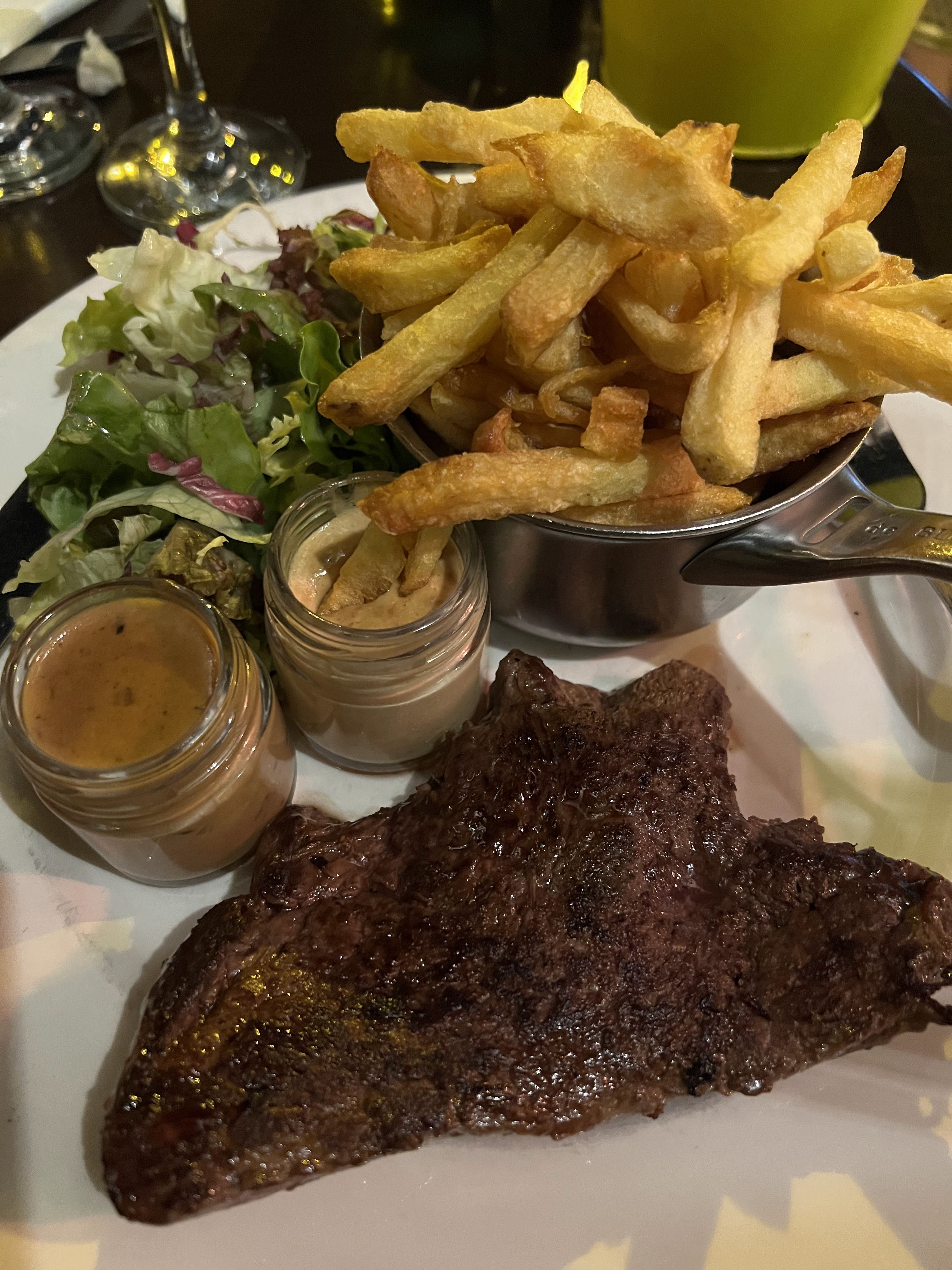 Ce restaurant vit surtout de son image, de la déco et du charme qui s'en dégage... Le vin et les plats étaient vraiment bons, avec néanmoins une grosse déception au niveau des frites, qui - si on nous a assuré étaient fraîches - étaient vraiment passable. Le pain perdu aurait pu rattraper le tout, mais c'était compter sans la petite souris qui a traversé la salle en fin de repas, sûrement pour nous souhaiter une bonne soirée !