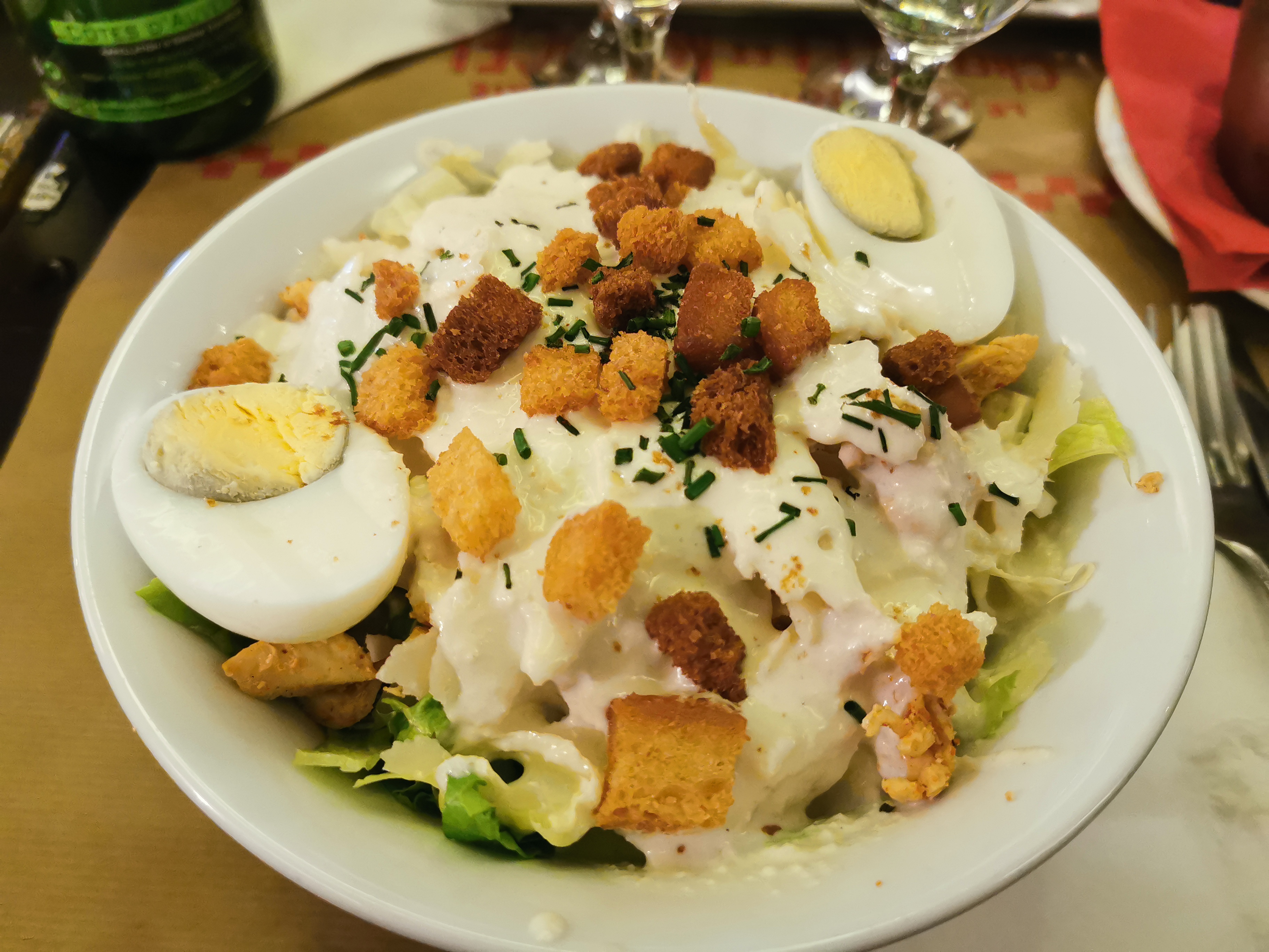 Bonne cuisine mais dans la salade césar, beaucoup de salade et peu d accompagnement Service très rapide et accueillant