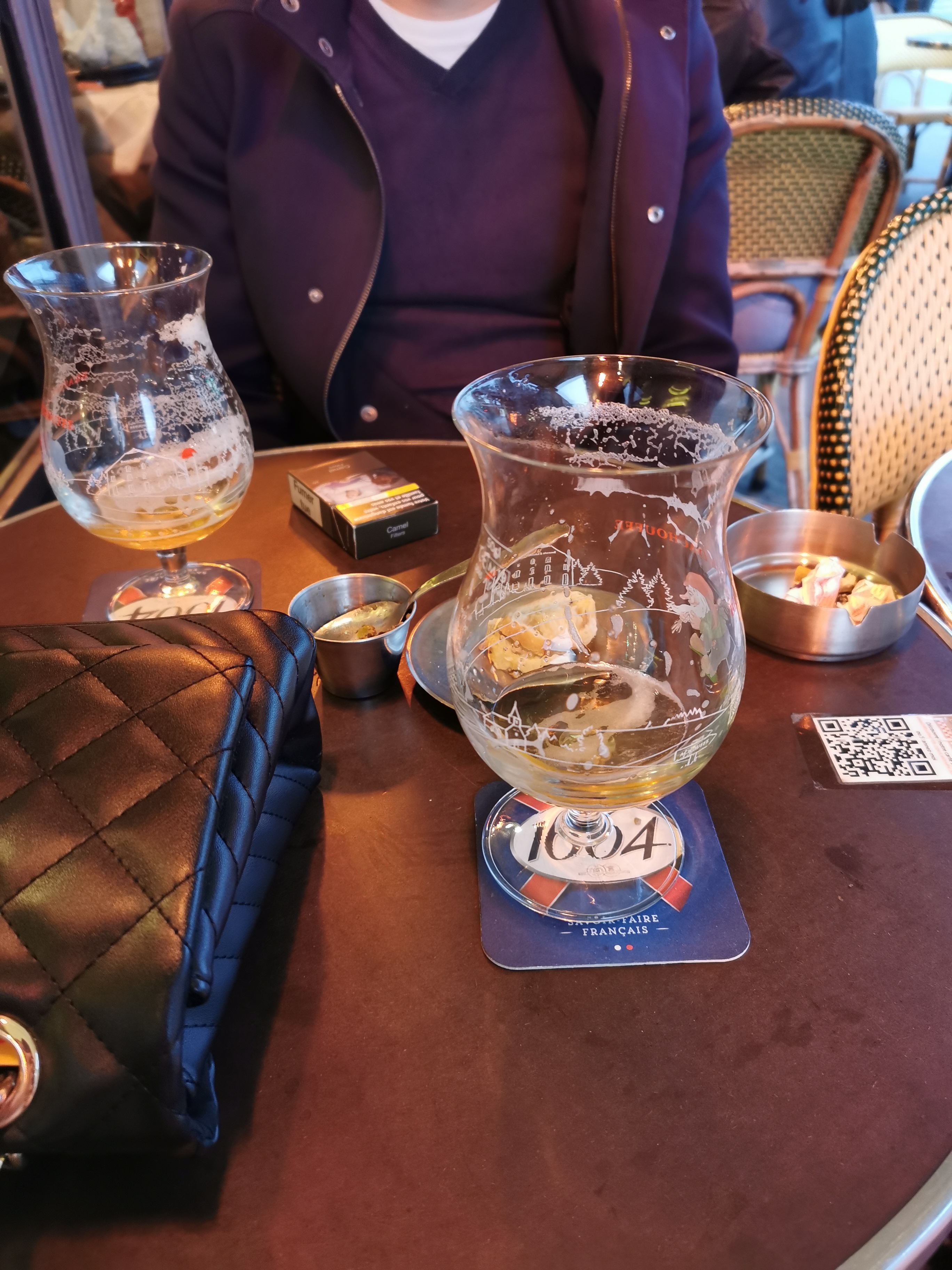 Nous sommes venus prendre un petit verre pour clôturer une fin d’année ! Les boissons et spécialement les desserts étaient délicieux ! Service impeccable avec un serveur (aux lunettes) très drôle et gentil ! Merci !