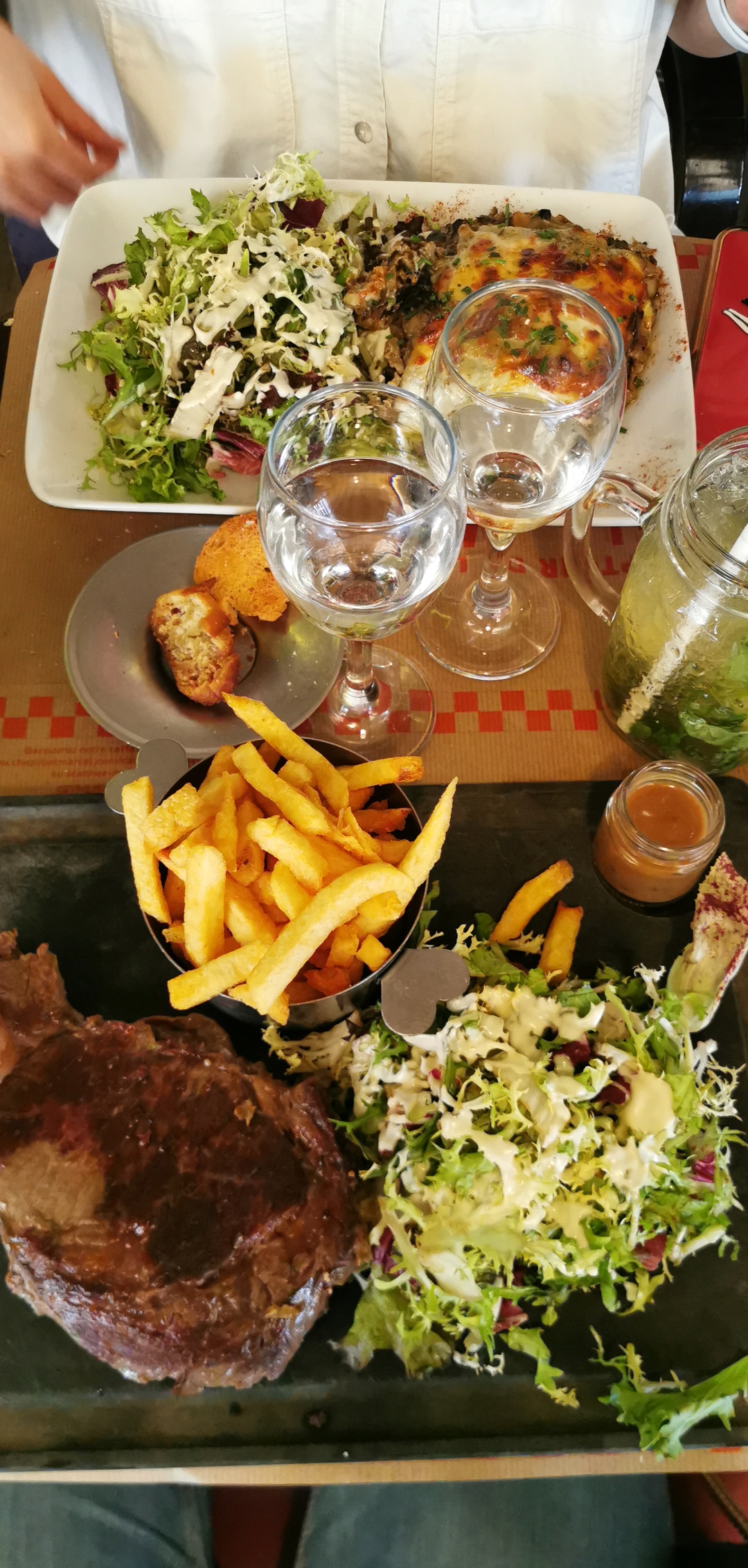 Agréablement situé, cuisine riche et copieuse, beaucoup de fait maison... (attention frite trop cuites) ... Manque de personnel... De ventilation... Boissons et desserts trop chers... Victime de son succès il y a beaucoup trop de monde (bruyant)...