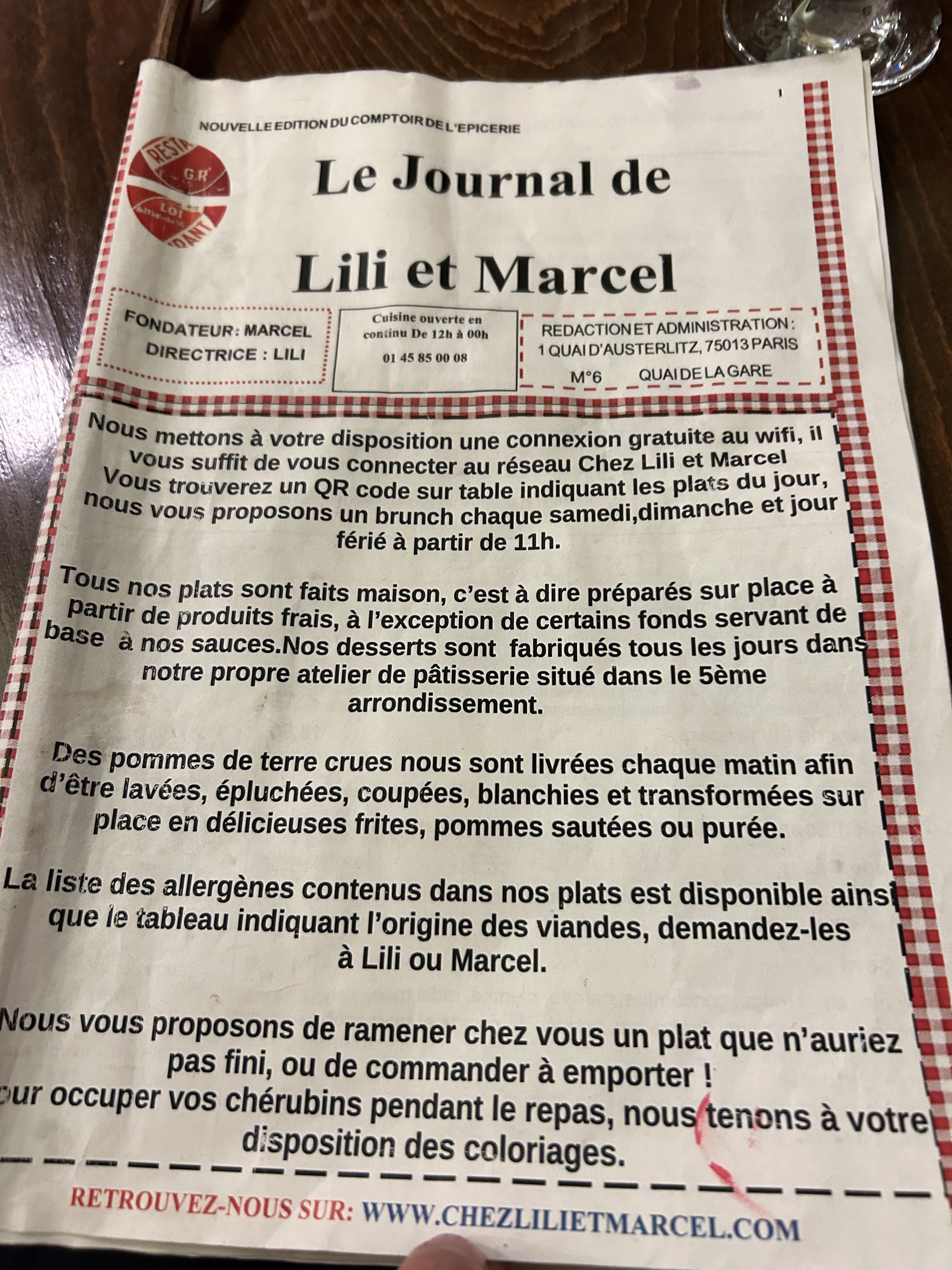 Après plusieurs repas je trouve toujours « chez Lili et Marcel » aussi agréable. Le personnel est compétent, à l’écoute et très agréable. La nourriture est de qualité du moins la viande (je ne mange pas de poisson) ! Le cadre est aussi très original et authentique avec de vieilles pub dans un style vieux bistrot français et une terrasse agréable malgré la circulation que l’ont oublie vite. Je recommande !