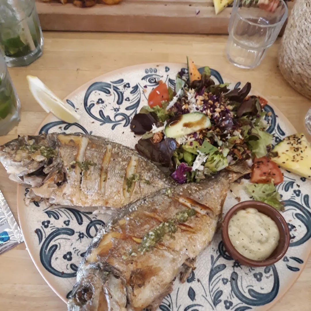 3 suggestions testées et résultat .. très bien. Sardines grillées et ceviche de thon TOP, dorade normale. Présentation assiette soignée, terrasse ombragée et service correct.