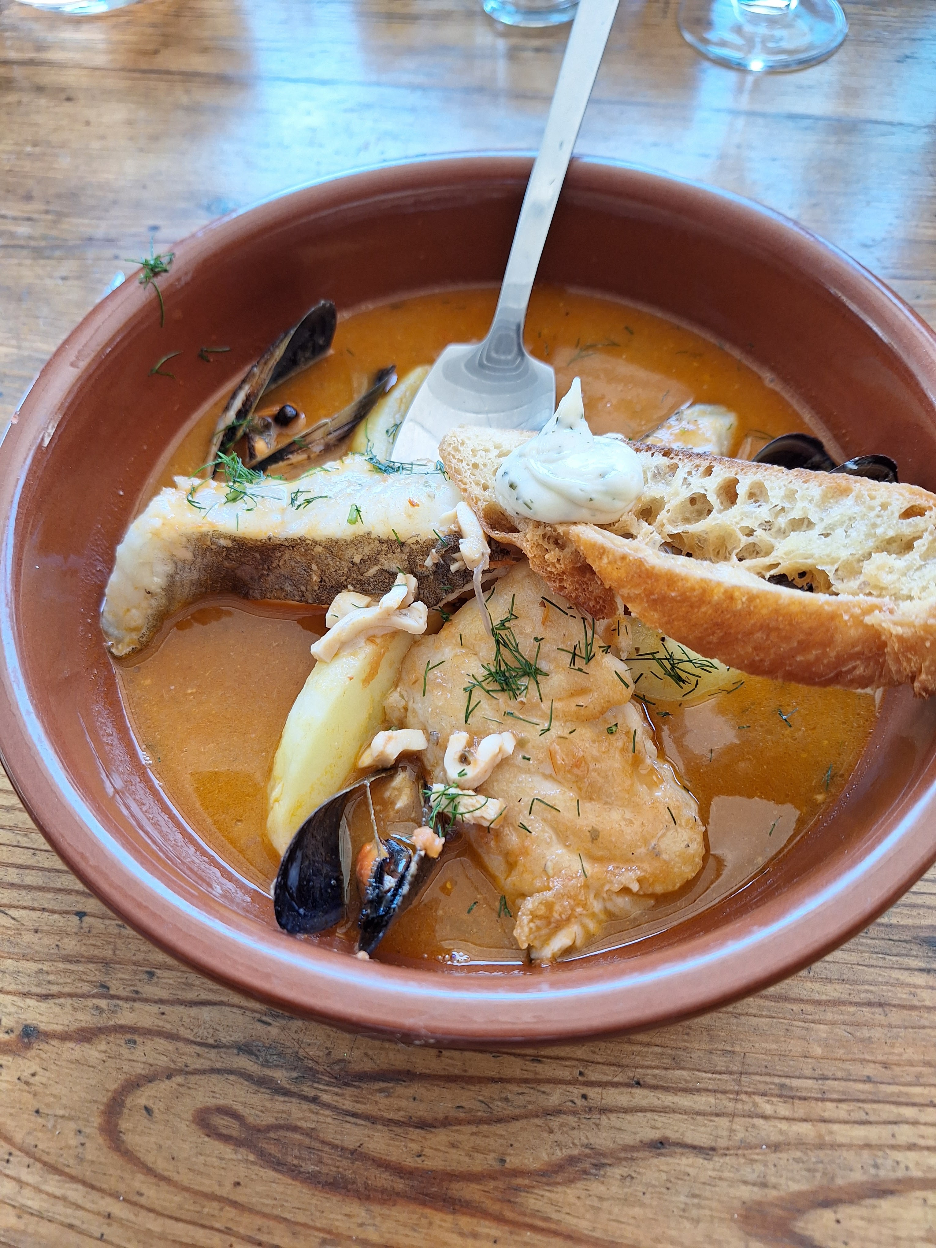 Mes amis et moi avons récemment dîné au restaurant et ce fut une expérience délicieuse. Nous avons mangé un poisson du jour et des moules, la nourriture était impeccablement fraîche et préparée à la perfection et l'ambiance était charmante, le serveur était adorable. Je recommande vivement ce restaurant à tout amateur de cuisine française.
