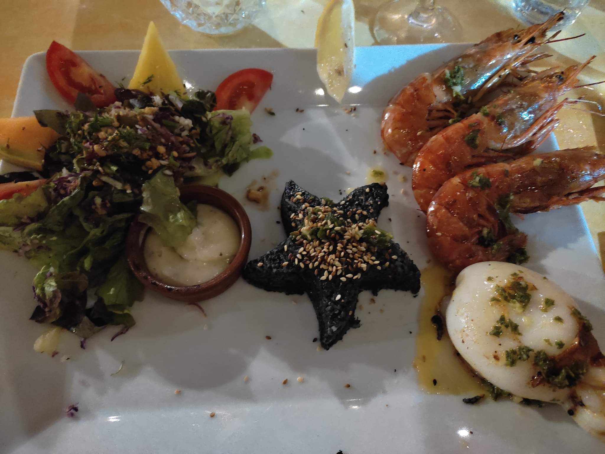 J’ai eu l’occasion de prendre une parillade de poisson royale avec homard un délice Copieux frais L’ailloli super bonne les frites maison au top avec la petite salade exotique car il ya des fruits 🍉 Excellent qualité prix je recommande Par contre mieux vaut reserver en avance car souvent complet et le café gourmand excellent vraiment 👍😋
