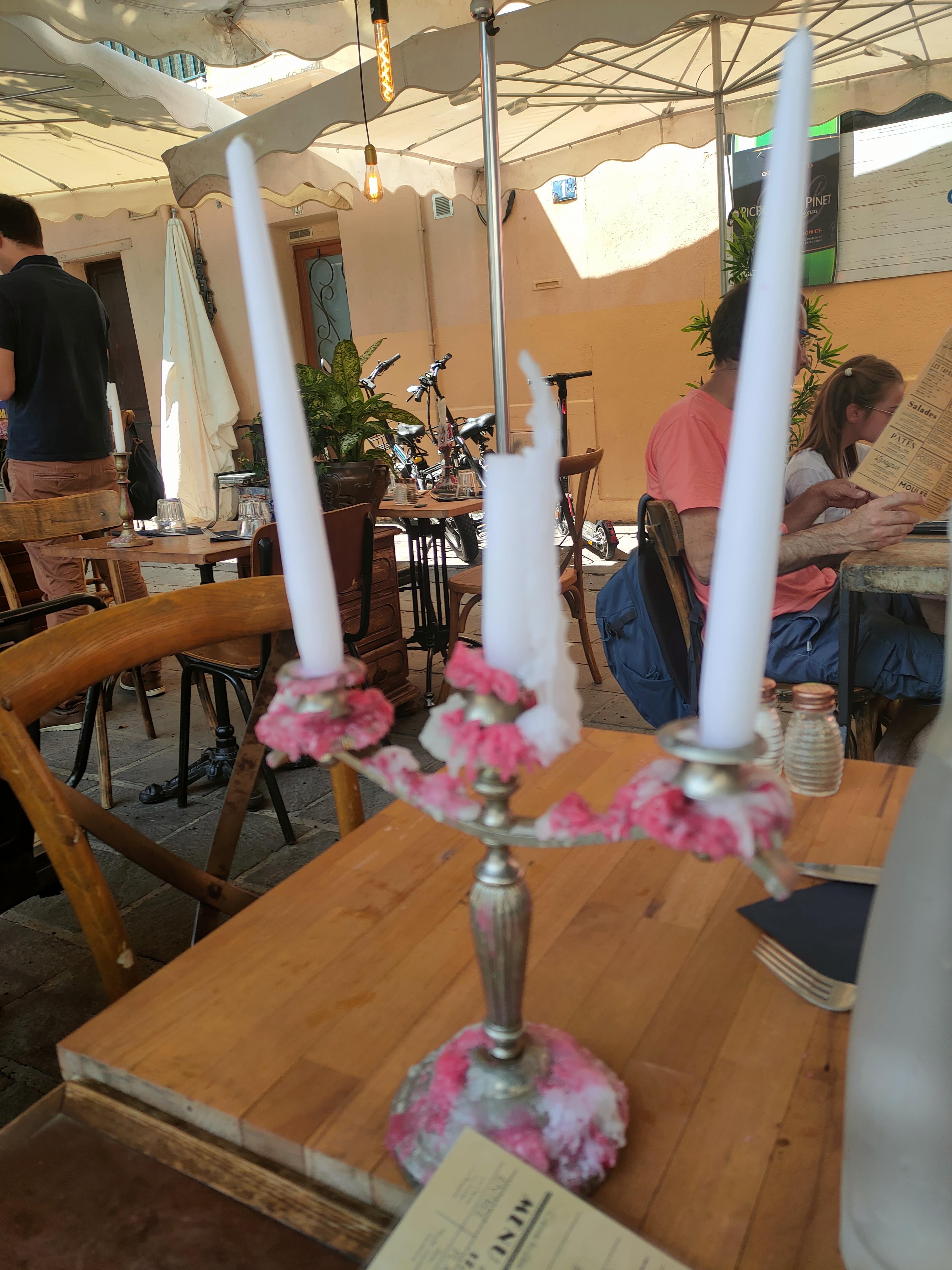 Bonne expérience pour notre part , service assez rapide , plats bien présentés et appétissant. Effectivement serviettes pas nikel et tables pleine de cire mais ces chandeliers ont tellement de charme ... Certaines choses sont trop chère comme le café...une demi petite tasse de café pour 2,50 😱
