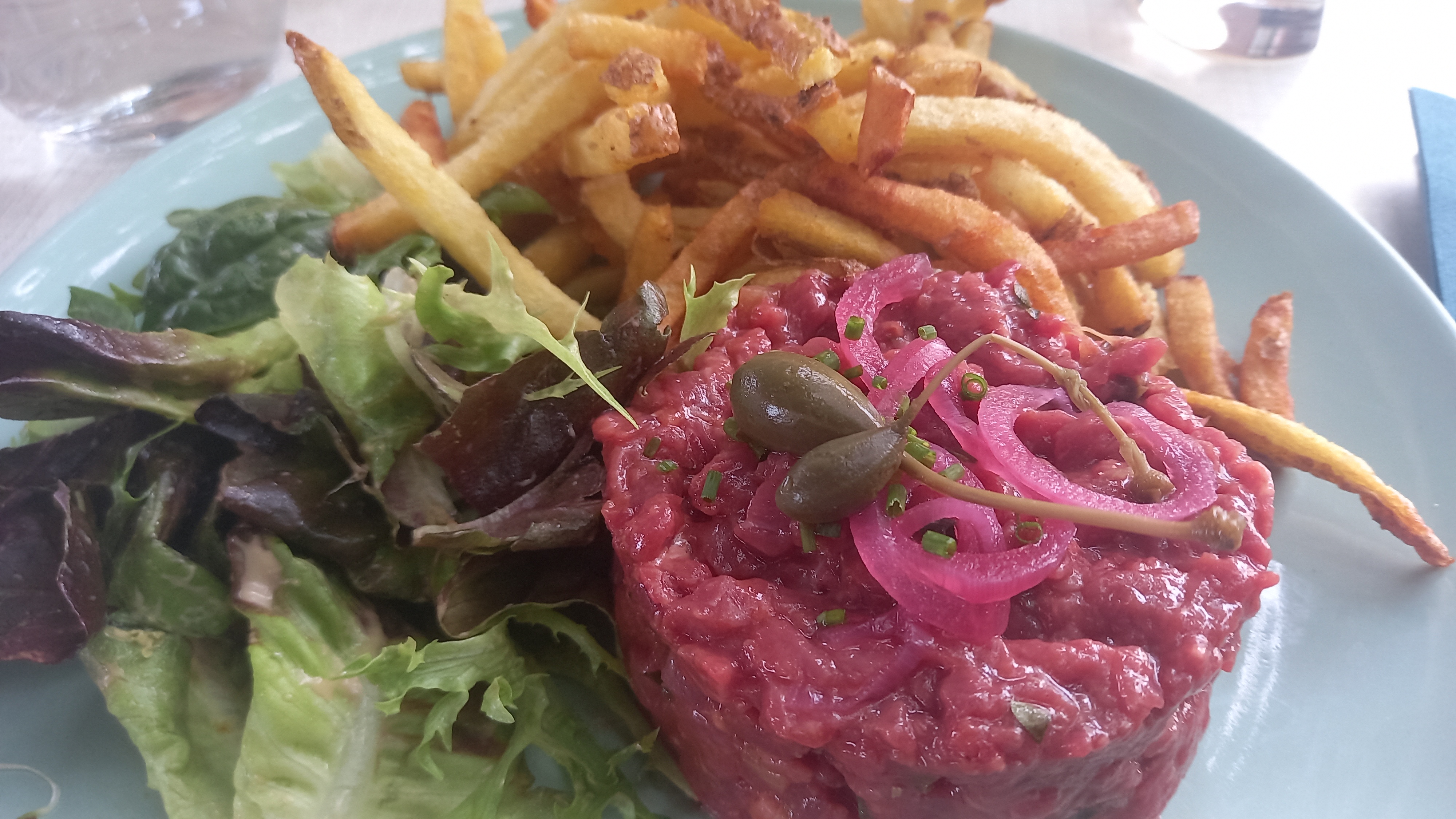 Service rapide. Frittes surgelées, tartare bon mais sans plus ..