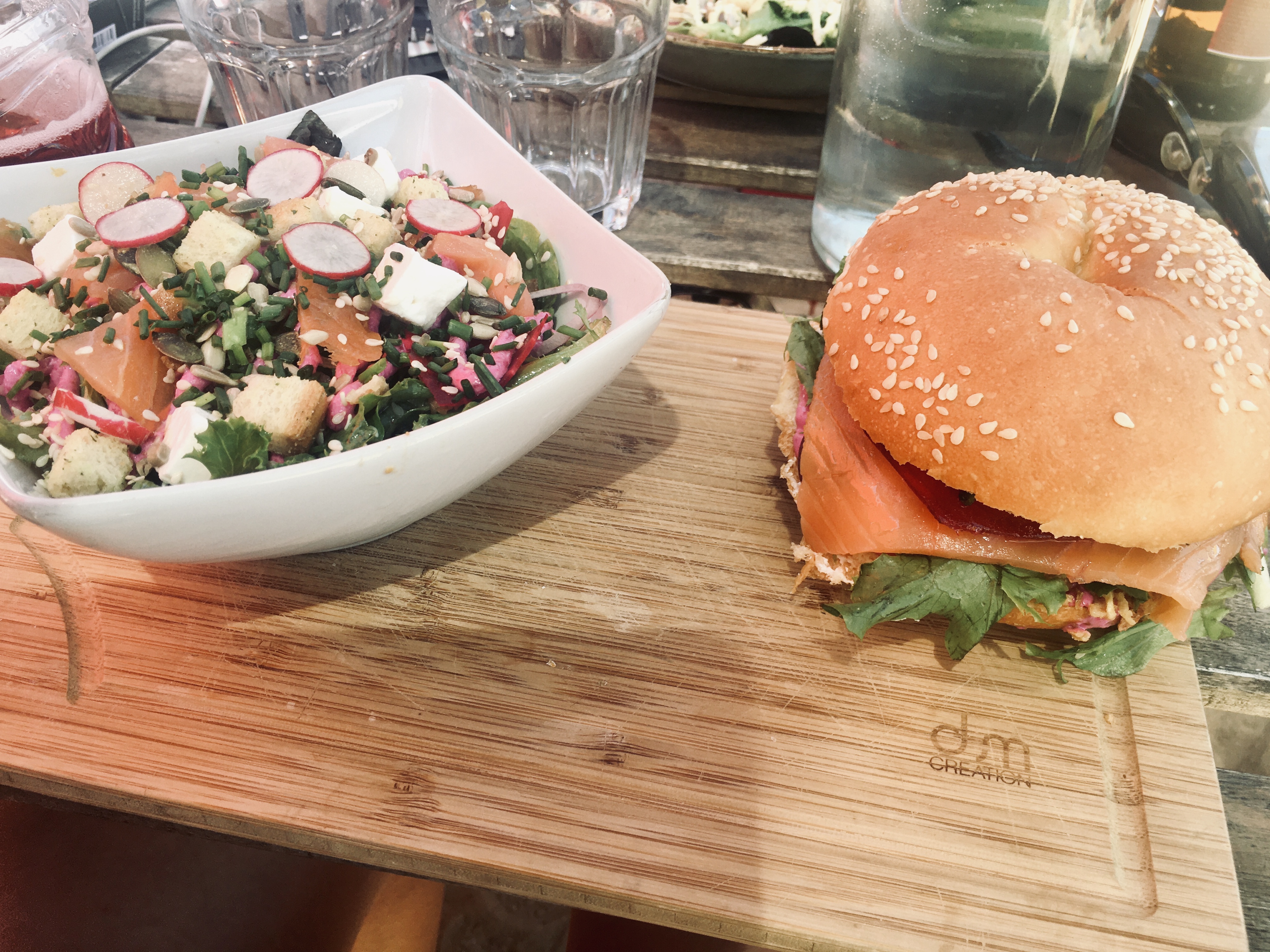 Pause repas agréable, les plats sont plutôt esthétiques, surtout les salades, le bowl et les baggles manquaient de saveur. Tarif un peu élevé. Le lieu est plutôt sympa et bien placé.