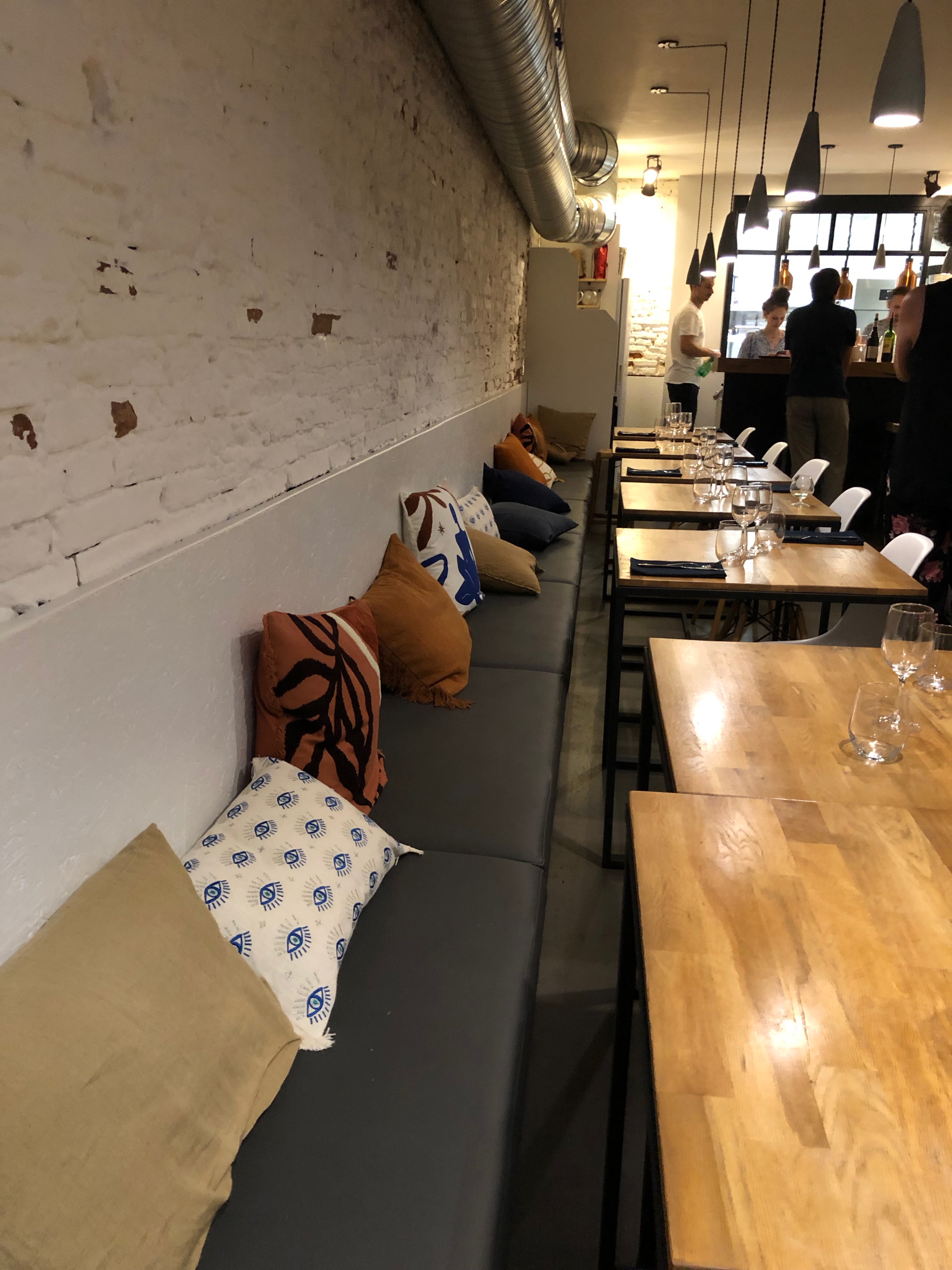 Excellent restaurant, plats goûteux et inventifs, vins à prix modeste et bien choisis, accueil très agréable. La salle est jolie, il y a de l'espace autour des tables, la rangée de coussins tout le long de la banquette la rend chaleureuse. Les toilettes sont très propres et rien n'y manque. Nous reviendrons.