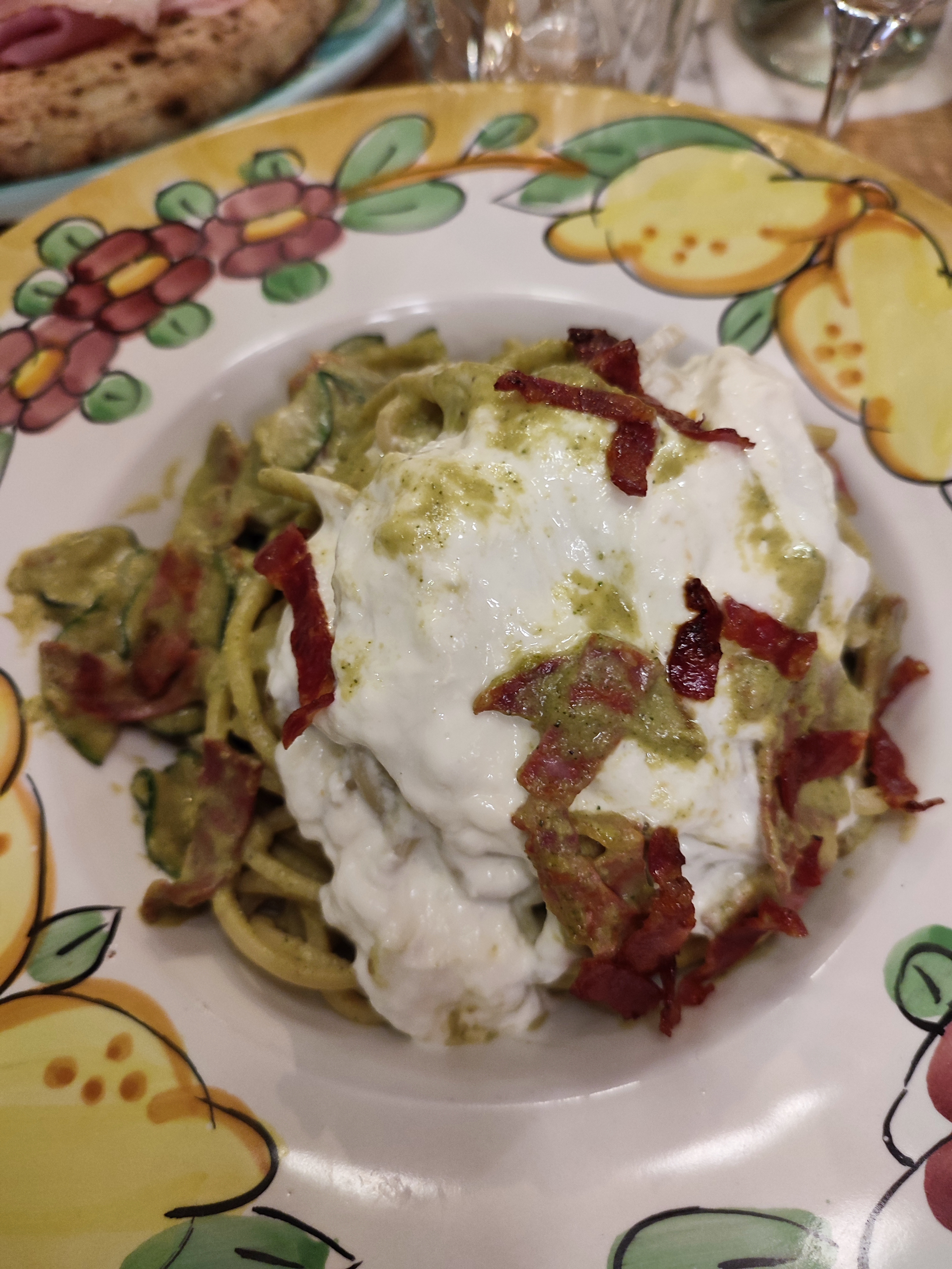 Pizza succulente Mafaldine al dente au gorgonzola délicieuses. Et Tiramisu succulent. Véritable trattoria 🥰😋🤩
