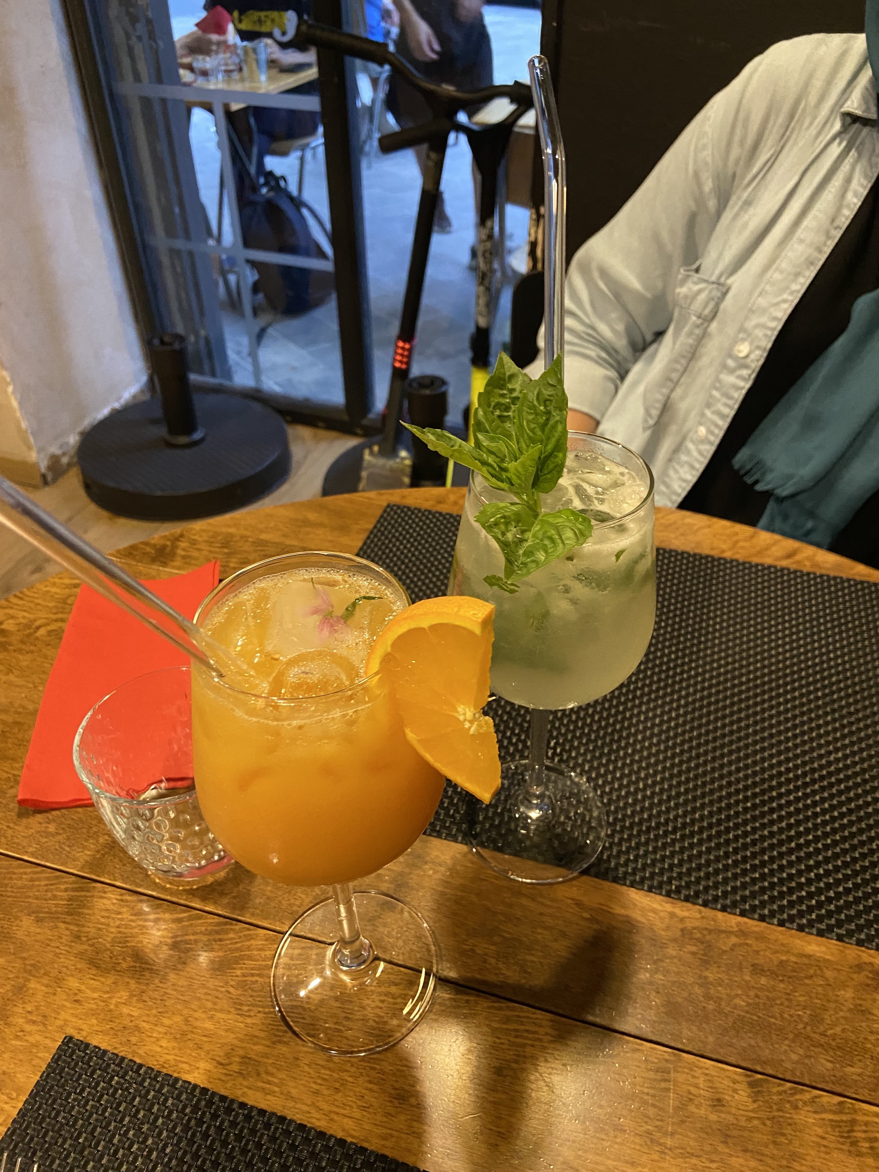 Pizzas succulentes et cocktails sans alcool très bons et originaux :)