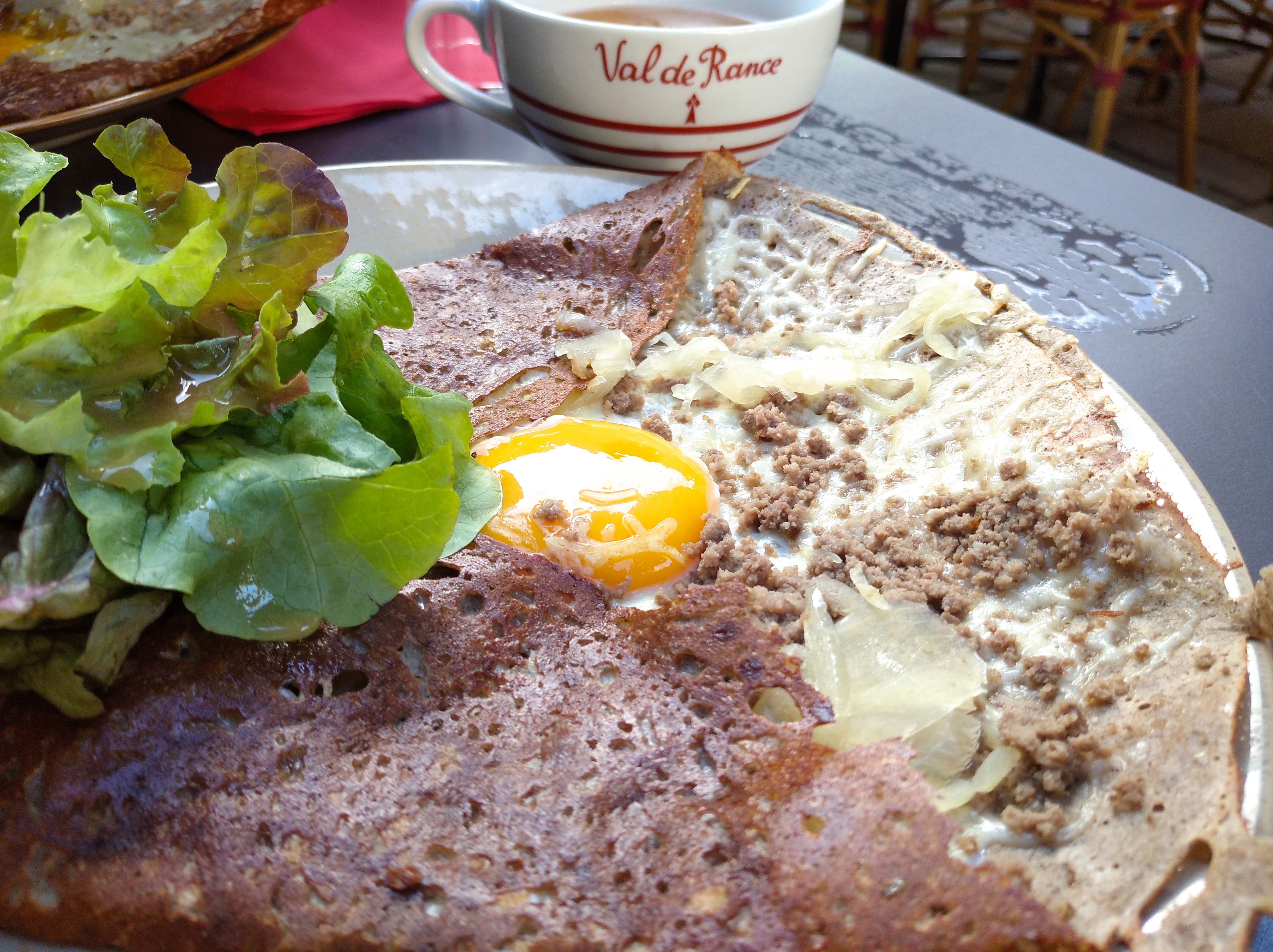 Les galettes sont trop bonnes La crepe chocolat banane est fade, le chocolat est fake sans gout et surrement pas avec du cacao ! Salt galettes are delicious. Dessert crepe with banana and chocolate is bad, the chosolate is ...bad and not really with cocoa.