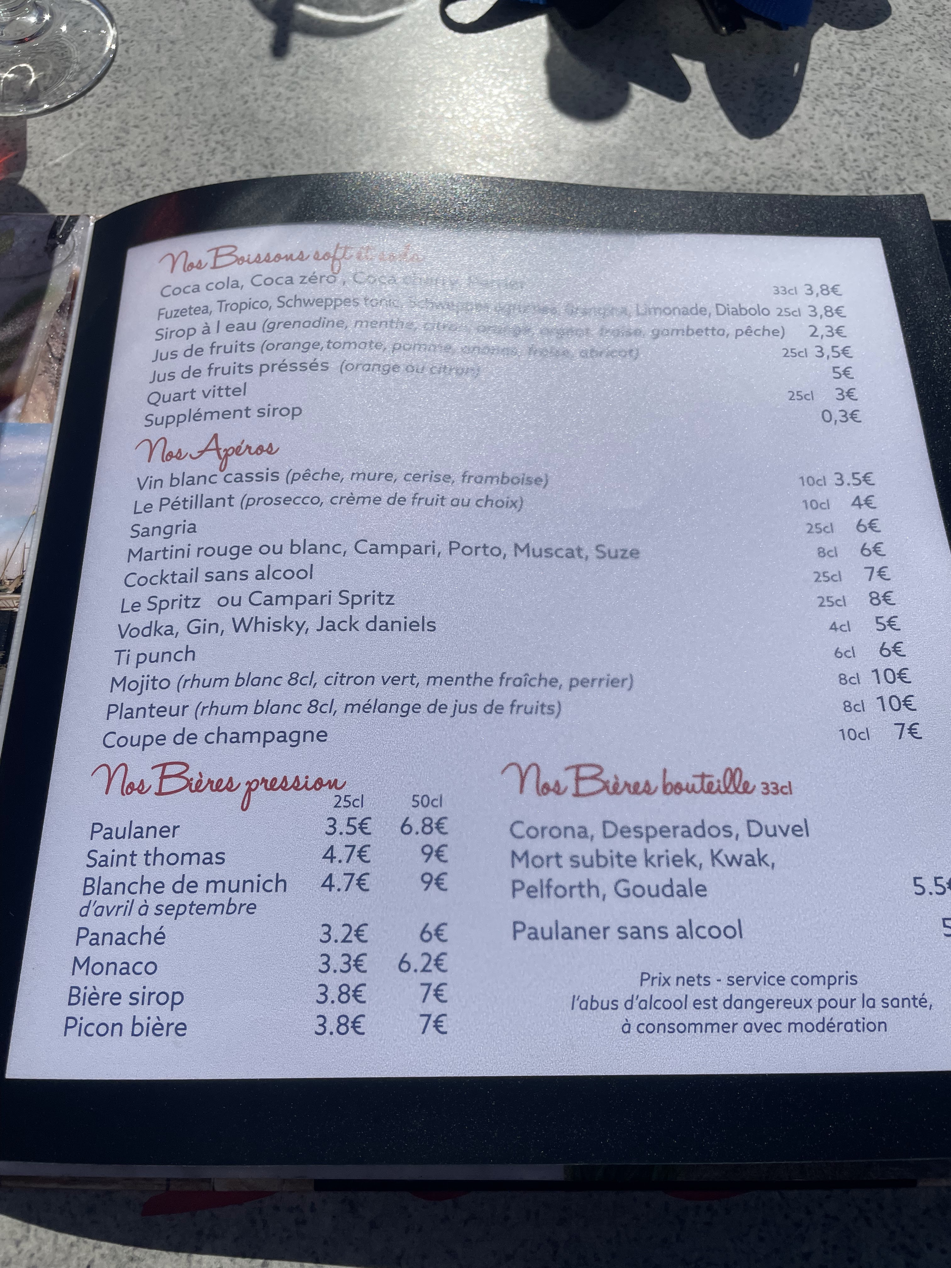 Sans doute le pire restaurant du port. Seul avantage la vue et l’exposition du soleil. Nous étions déjà venu au mois d’août cela étais correct. En base saison restaurant 3/4 vide Le serveur préfère fume sa cigarette plutôt d’assuré le service. Table collante, terrasse pas propre (mégots, papiers, serviettes..). Terrasse pas rangé. Cela laisse vraiment a désiré. Les moules étais bonne, la pizza également mais sauce tomate industrielle. Dessert industrielle (profiterole) Déçu de l’etablissement