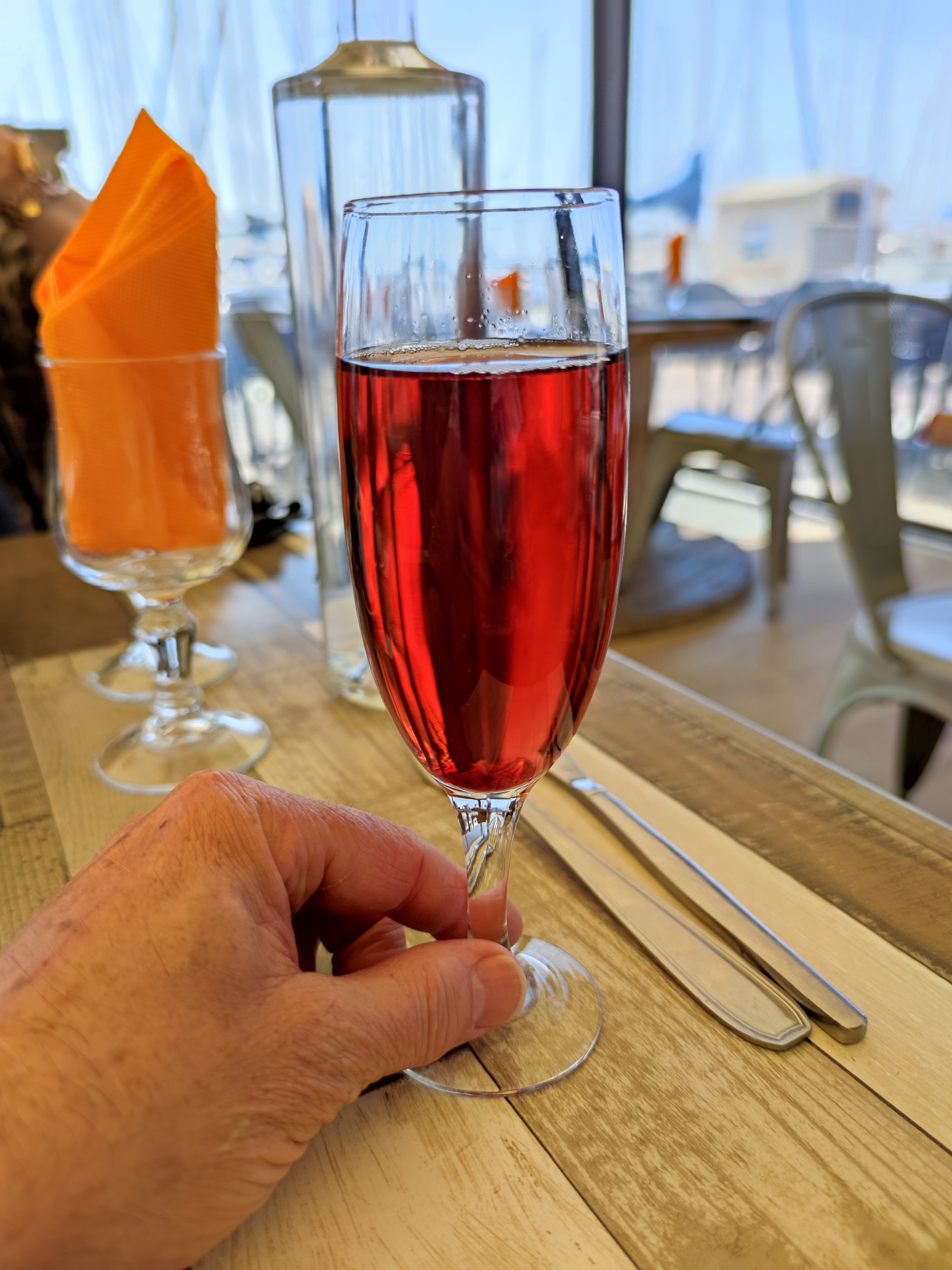 Petit arrêt pour prendre un verre après une belle balade sur le port. On a attendu 5/10 minutes à l'entrée pour que le serveur nous installe mais il faisait style de pas nous voir... On va donc vers lui, demande si il faut s'assoir directement ou si il faut l'attendre et il nous répond sèchement la bas il y a une table... Un petit peu déçu, l'endroit est sympa mais pas le serveur... Au passage masque sous le nez devant les clients... Pas très covid tout ça !