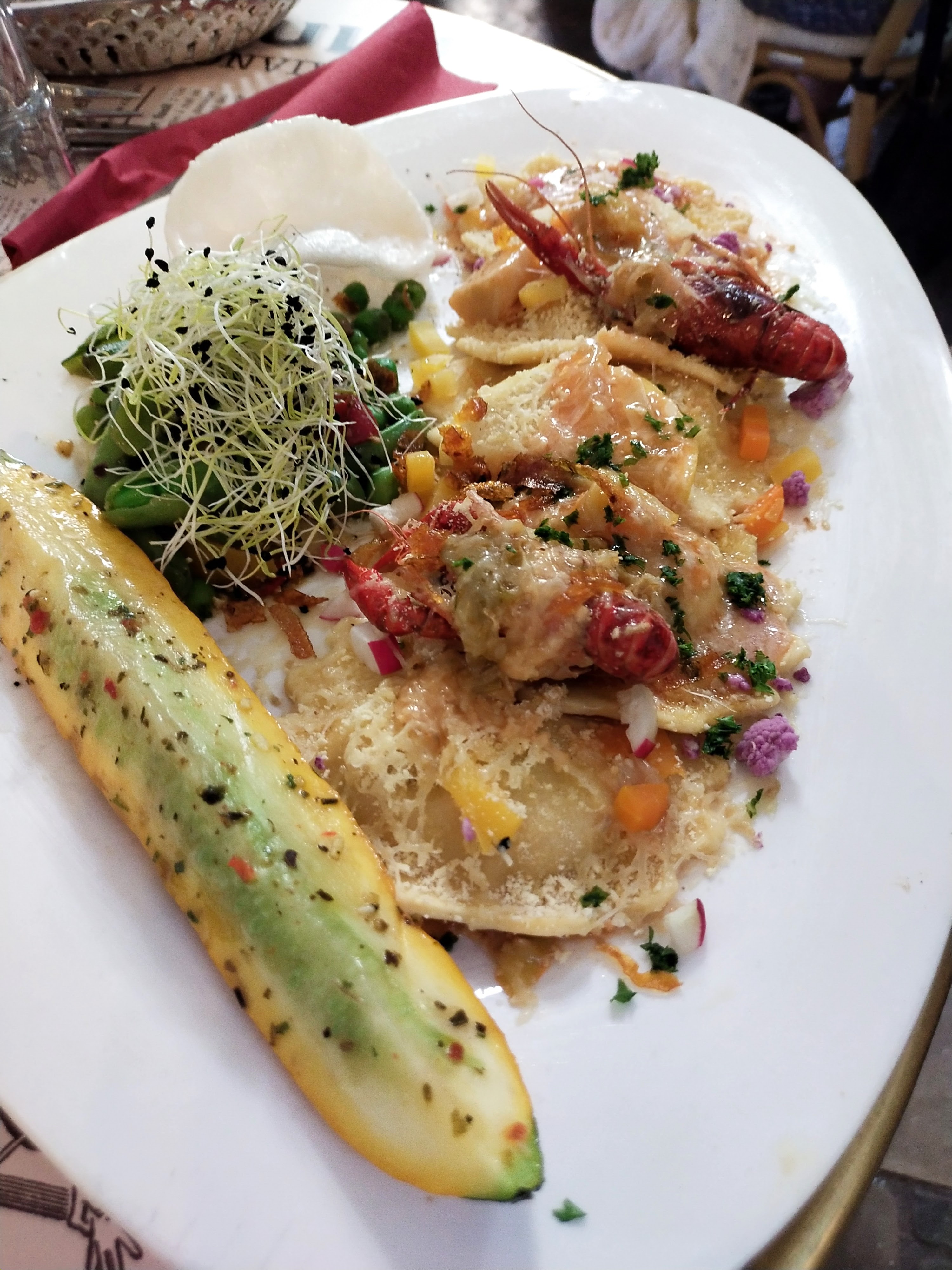 Très bon restaurant au centre de Narbonne avec des places assises à l'intérieur et à l'extérieur. Le service était attentionné et rapide et le choix de plats et de boissons est varié. Cependant, compte tenu des excellentes critiques, j'espérais que mon plat principal serait un peu plus excitant. Les raviolis étaient plutôt simples étant donné que cinq pièces coûtaient 22 euros. J'aurais probablement dû choisir un autre plat et je reviendrai certainement ici car cela semble être un endroit agréable.