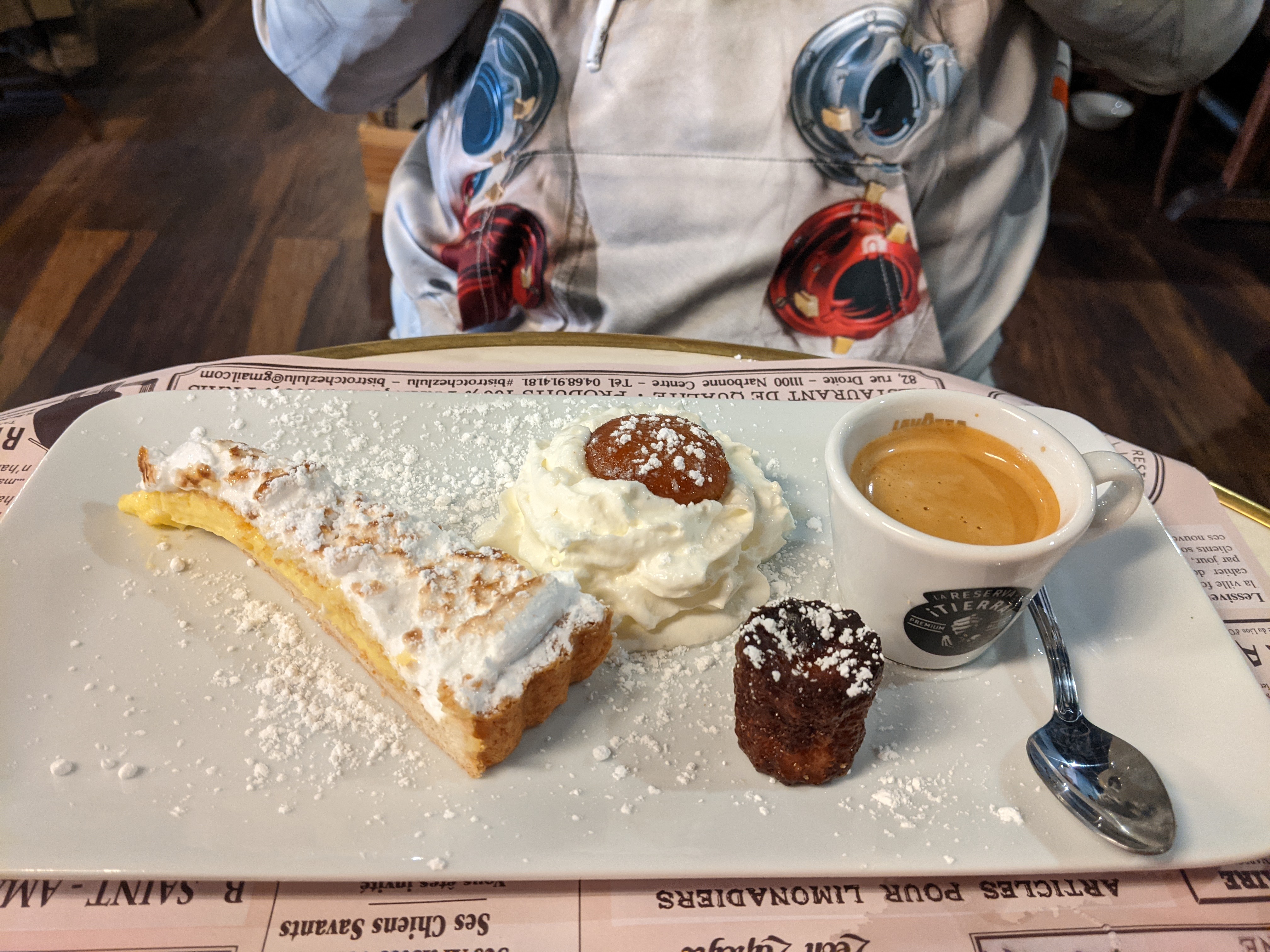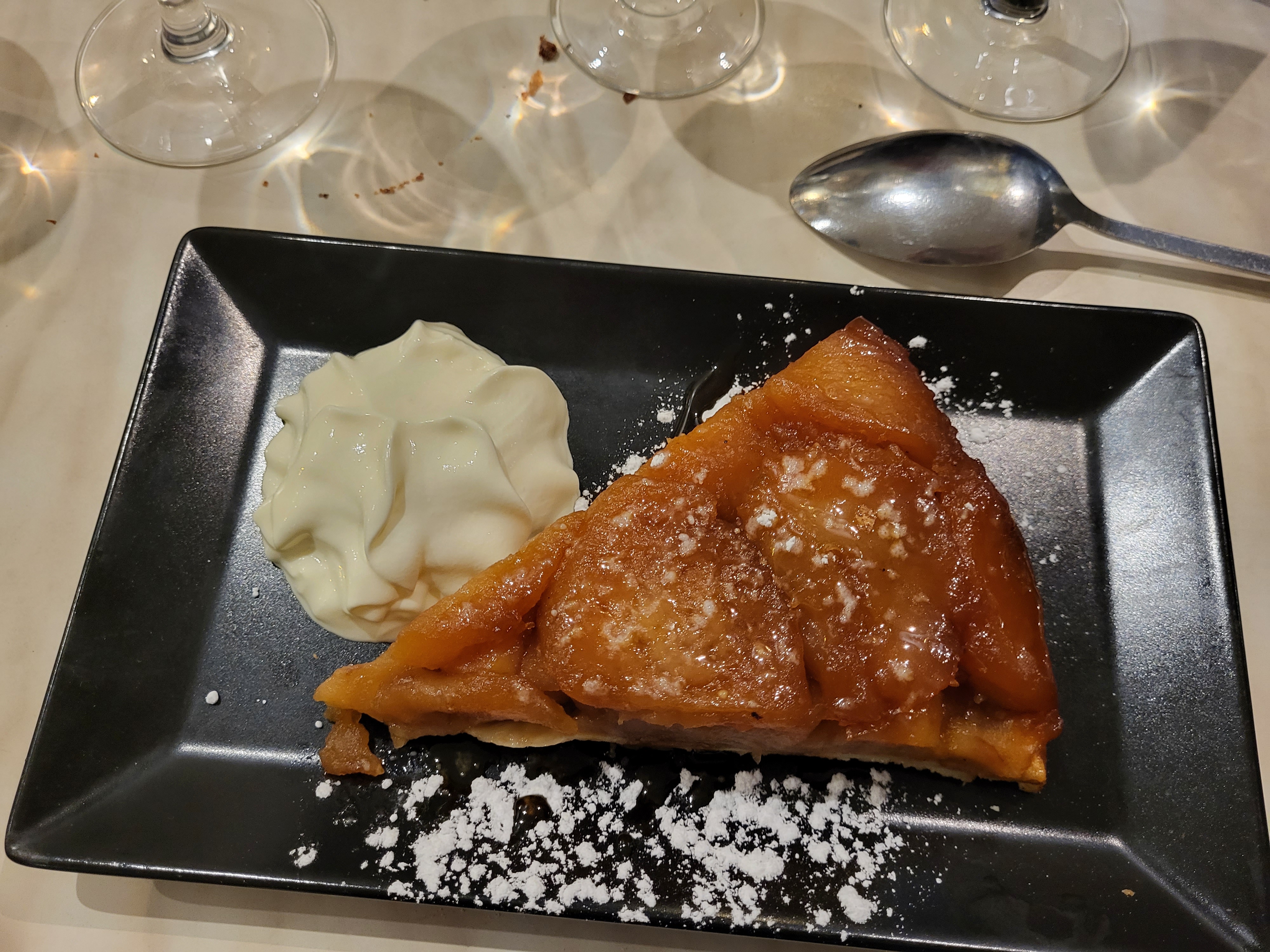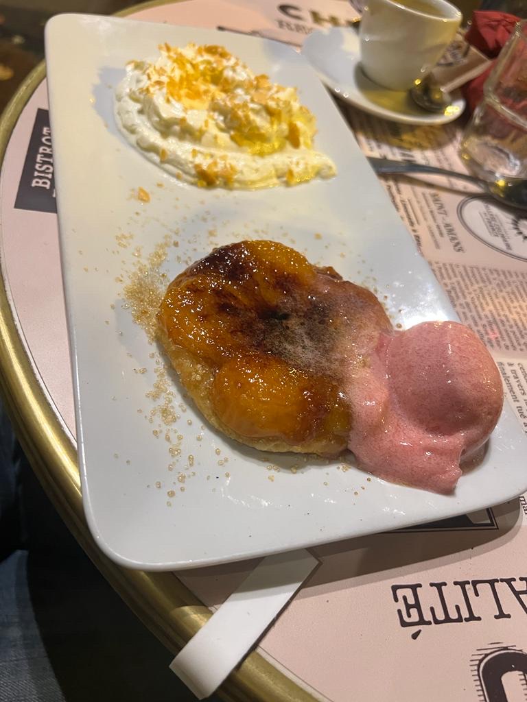 Repas excellent 1h d attente entre le plat et le dessert un peu long surtout en terrasse bruit important des motos et scooters qui passent sur le boulevard Nous reviendrons mais en hivers