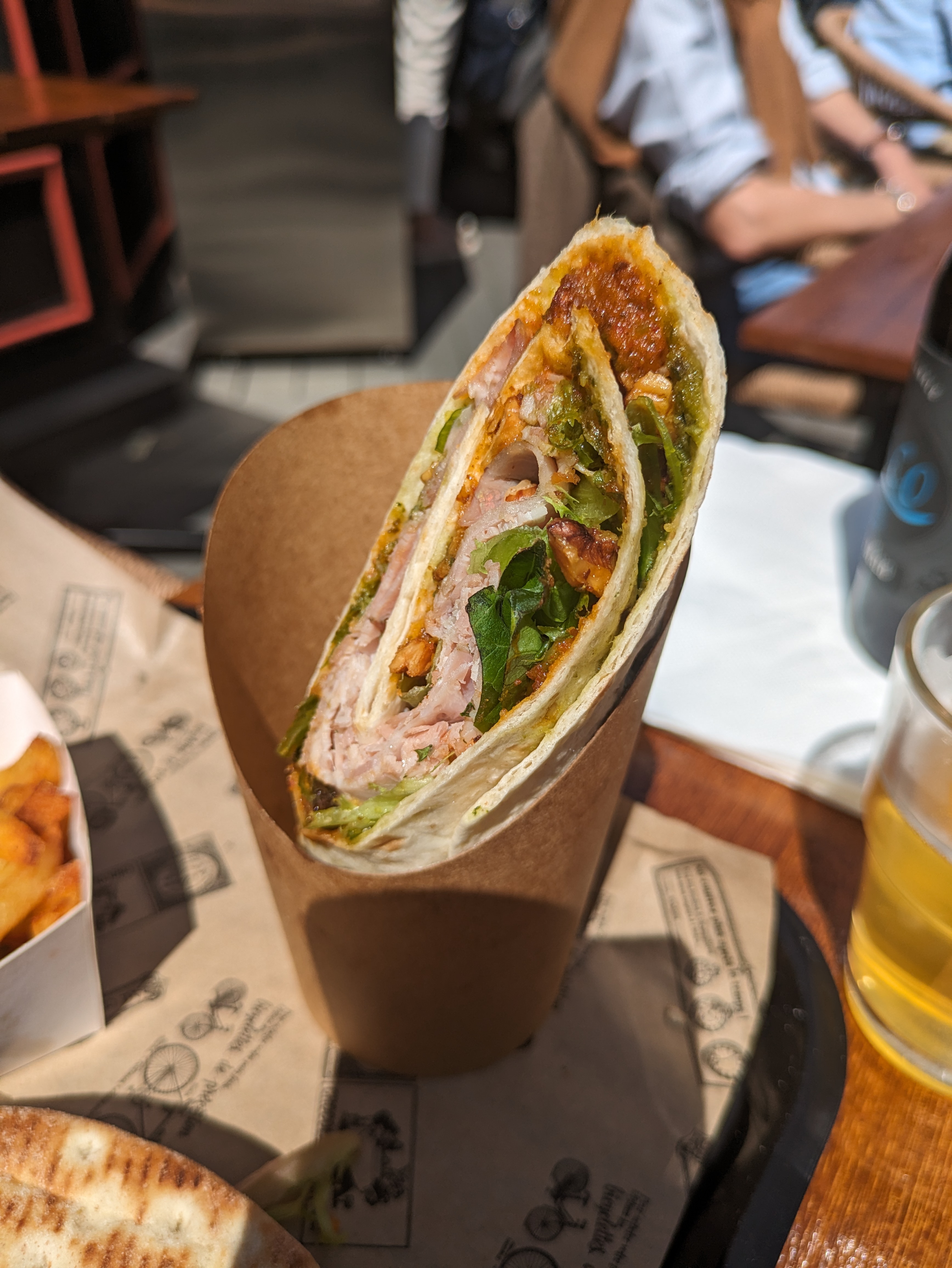Cuisine maisons, frites au top, wrap excellent ainsi que pinsa formaggio. Un service similaire, accueil très souriant et agréable et musique très sympathique. On recommande pour un arrêt snack en continu abordable et gourmand.