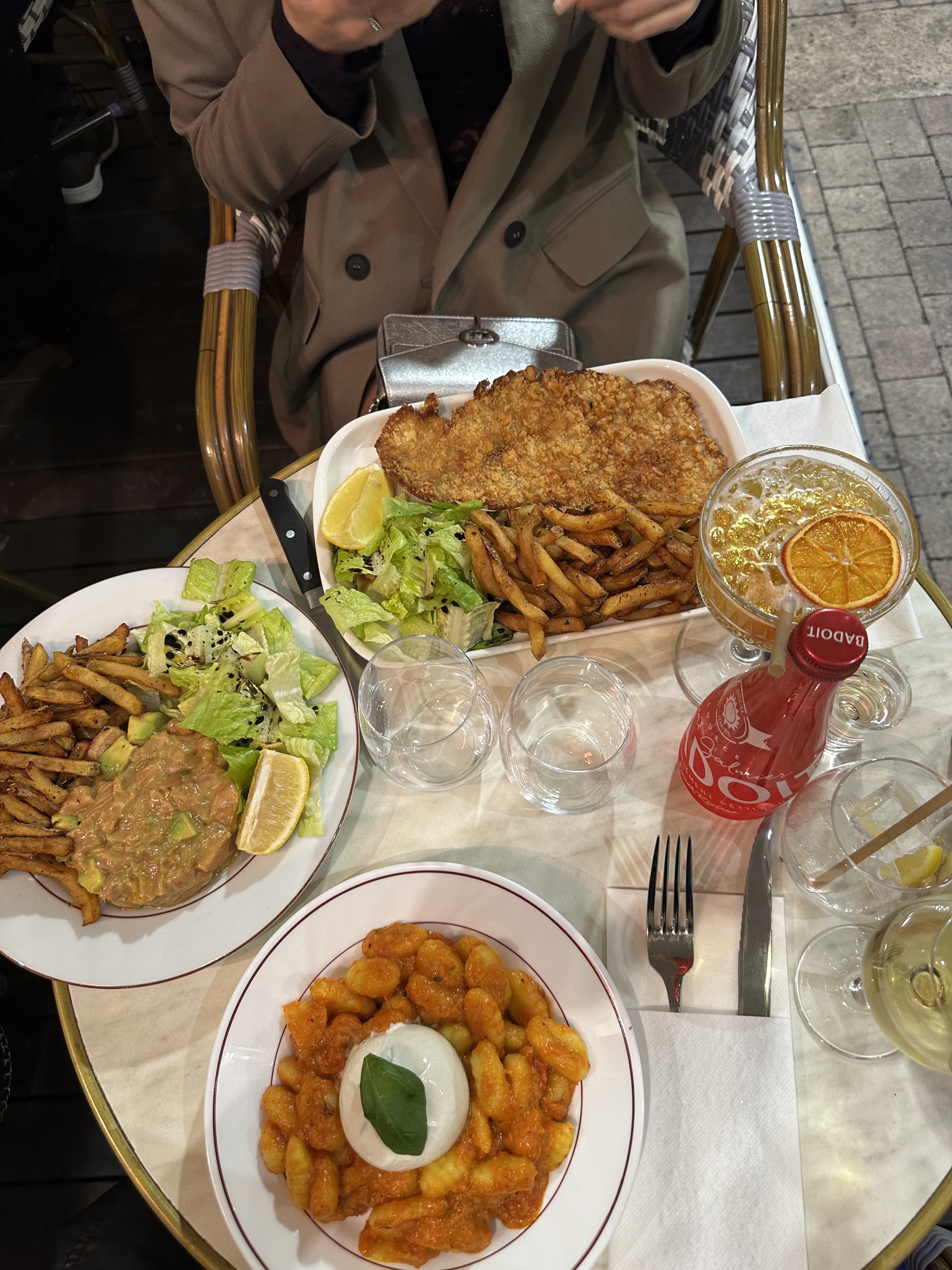Le restaurant est situé dans une belle place. Les cocktails sont bon par contre très petite quantité de frite dans les plats. Je suis pas repartie du restaurant satisfaite car l’escalope n’était pas ouf non plus mais bon à tester quand même Pour nous nous avons payé 58€ 2 cocktails et 2 Plats je trouve ça cher pour la quantité du plats