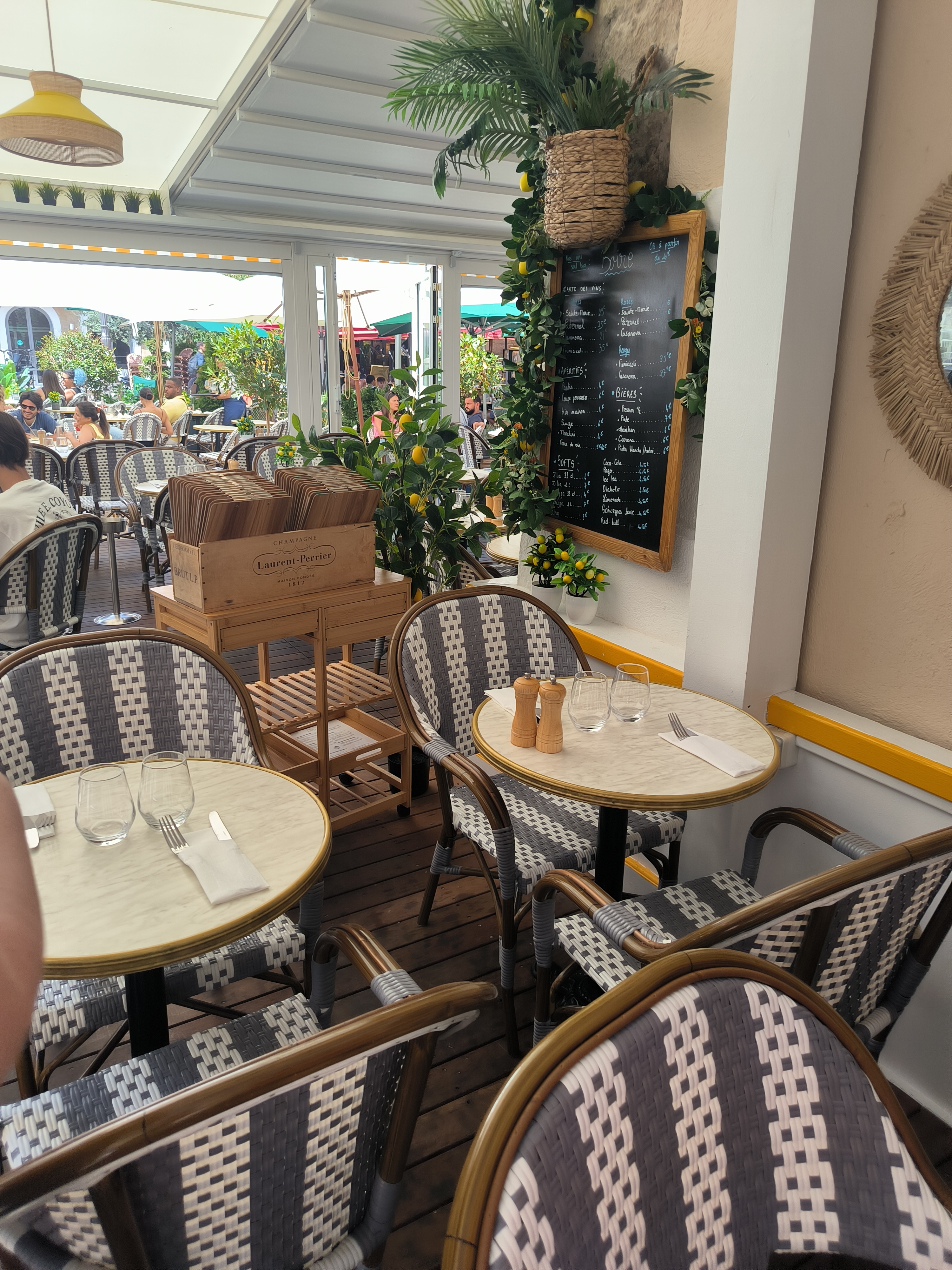 Terrasse et serveurs très sympa ! Le repas était super bon aussi et à prix abordables je recommande vivement !