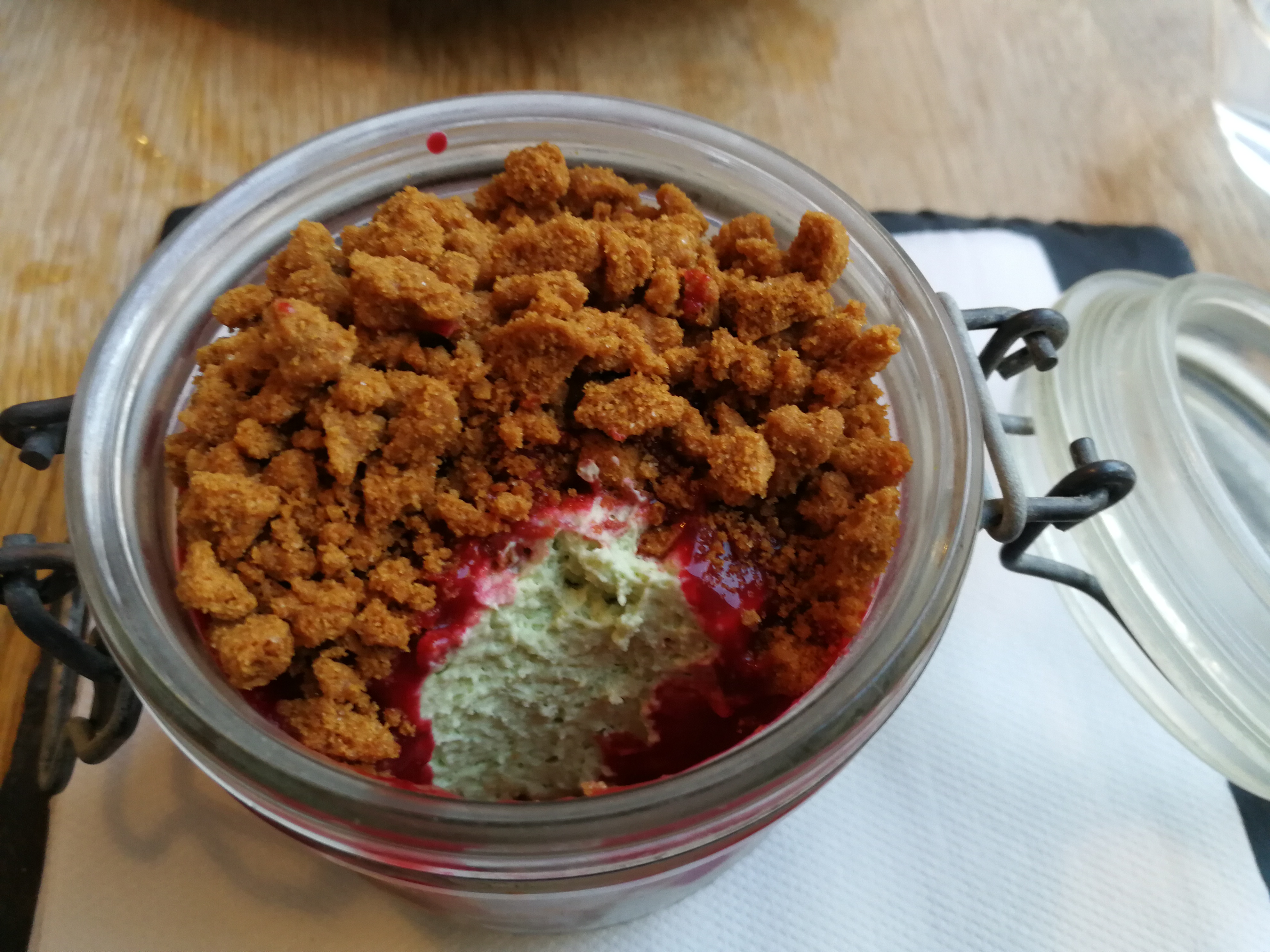 J'ai adoré leur dessert la verrine de tata. Mascarpone à la pistache. Un vrai régal