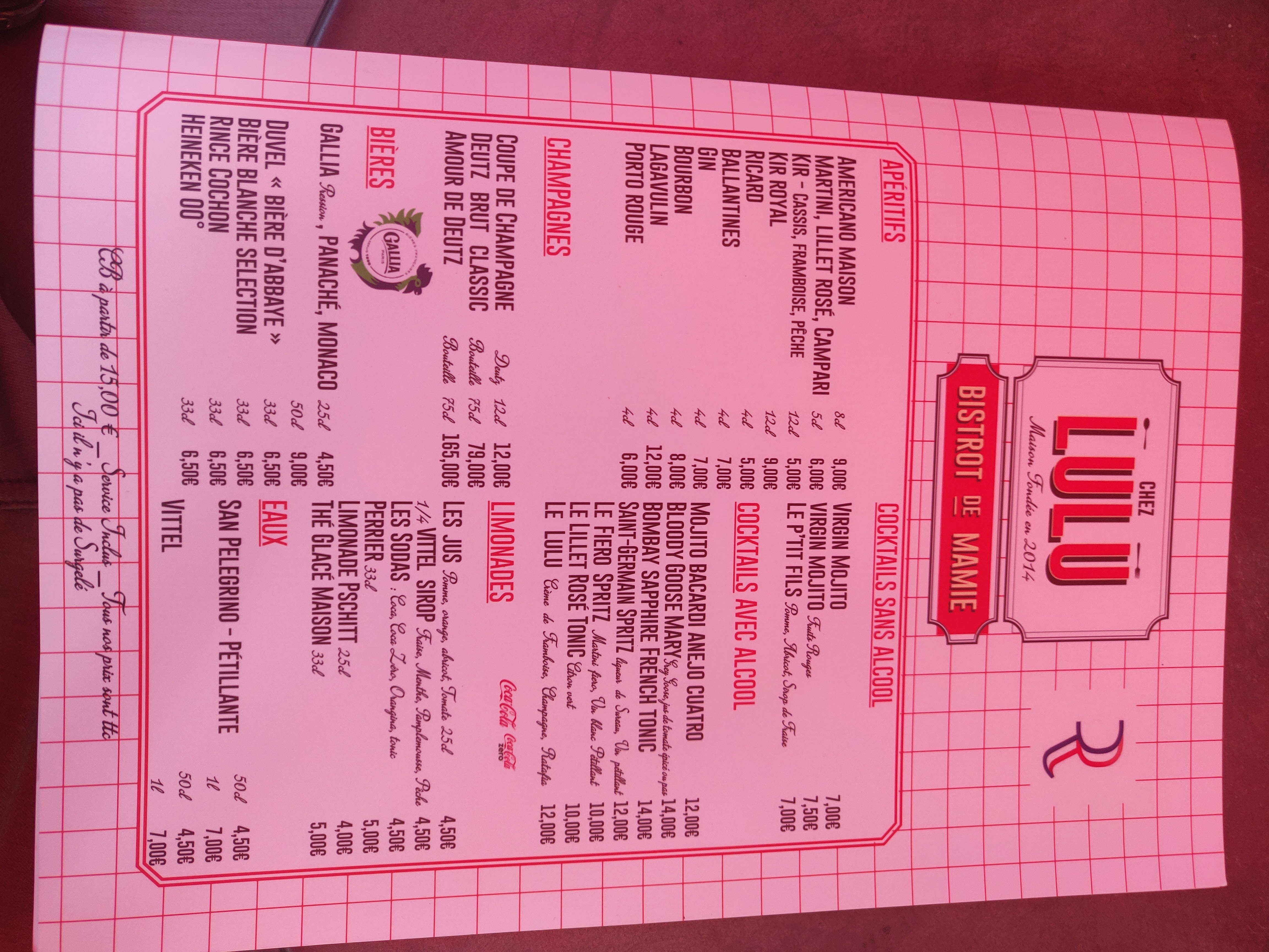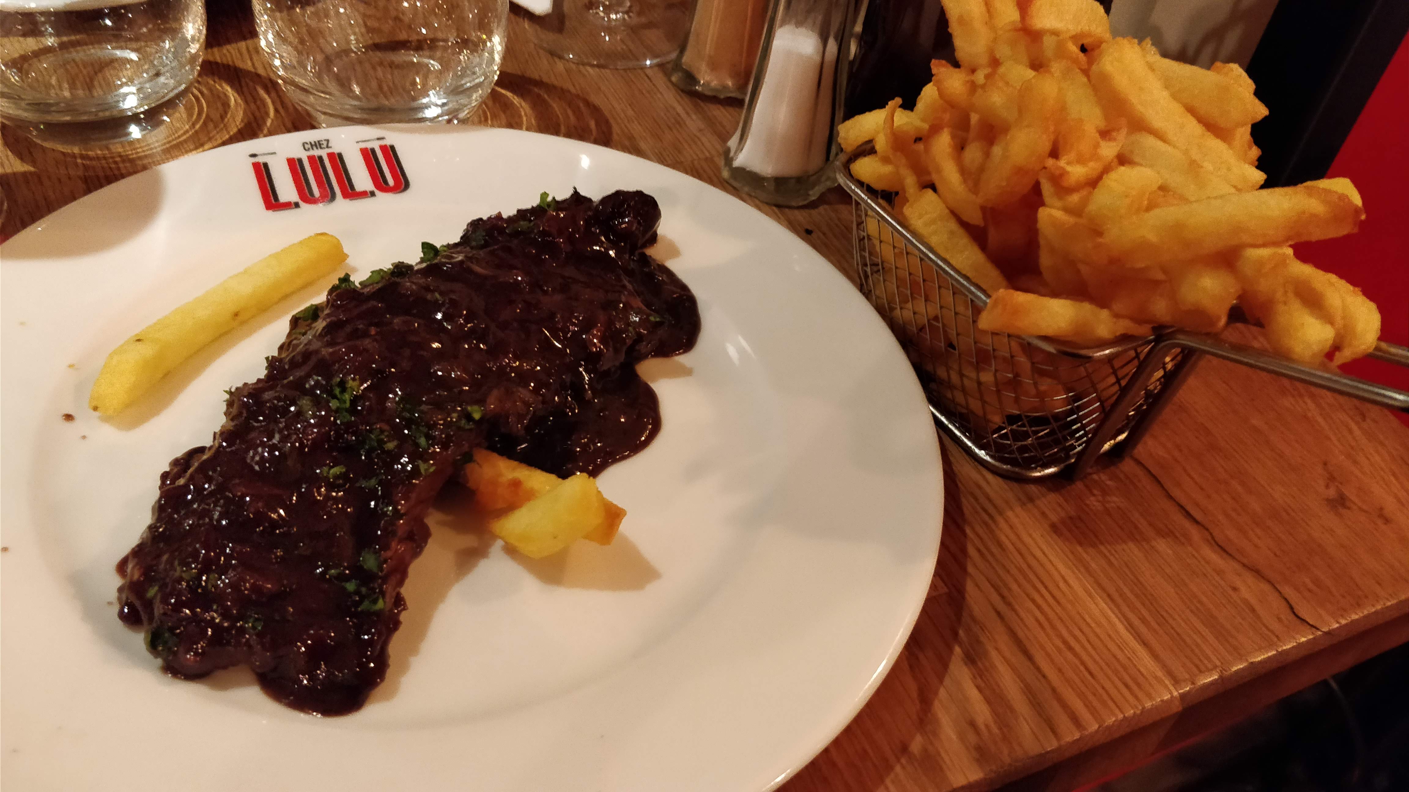 J’ai dîné chez Lulu plusieurs fois mais le dernier repas m’a beaucoup déçu. En effet, il n’y avait pas de viande sur le carré d’agneau servi. Je n’ai rien dit pour ne pas casser l’ambiance avec mes amis. Lorsque je le signale au responsable, il m’explique qu’il connaît le problème ; le boucher lui livre des carrés mal coupés en ce moment… il me propose de m’offrir un verre la prochaine fois. S’il le sait pourquoi continue t-il à servir des os sans viande. D’autre part, s’il était correct, c’est le plat qu’il aurait dû m’offrir lors de mon prochain passage. Malhonnête et pas commerçant !
