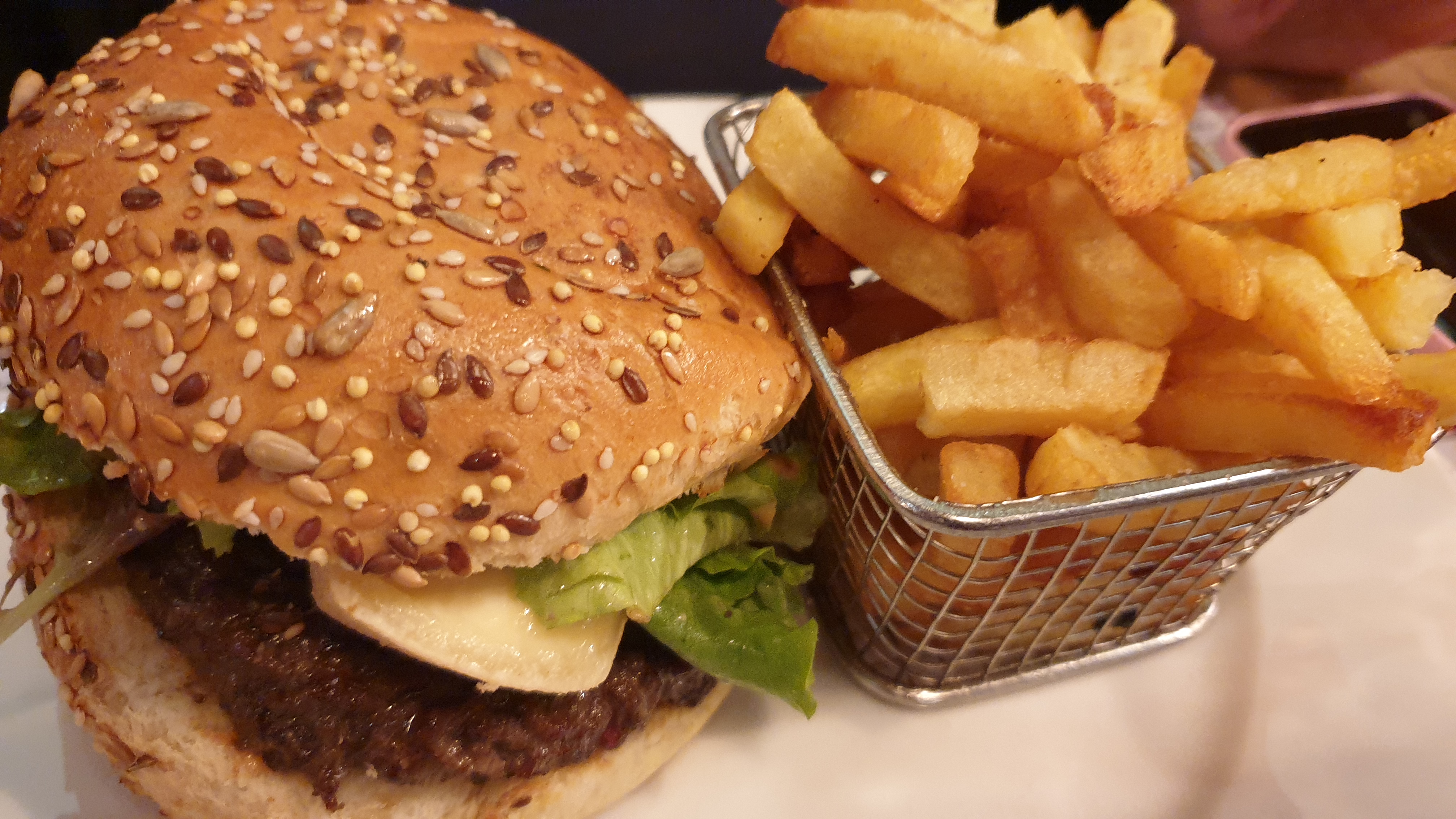 Bon burger mais très petite quantité de frites. En dessert, la brioche façon pain perdu était top.