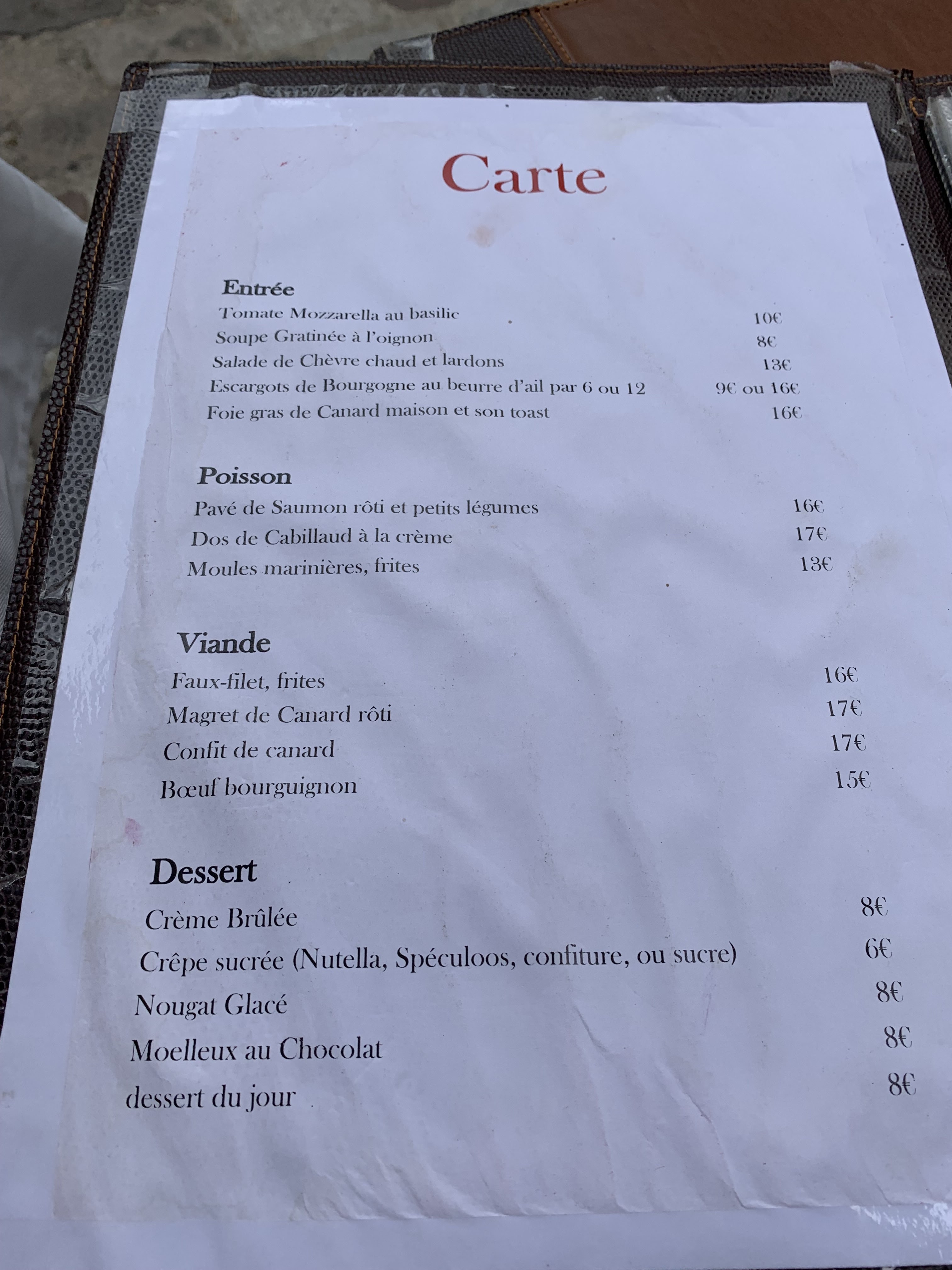 Cappuccino et crêpe nutella sur place, payé 10€50. Très bon, et bon service.