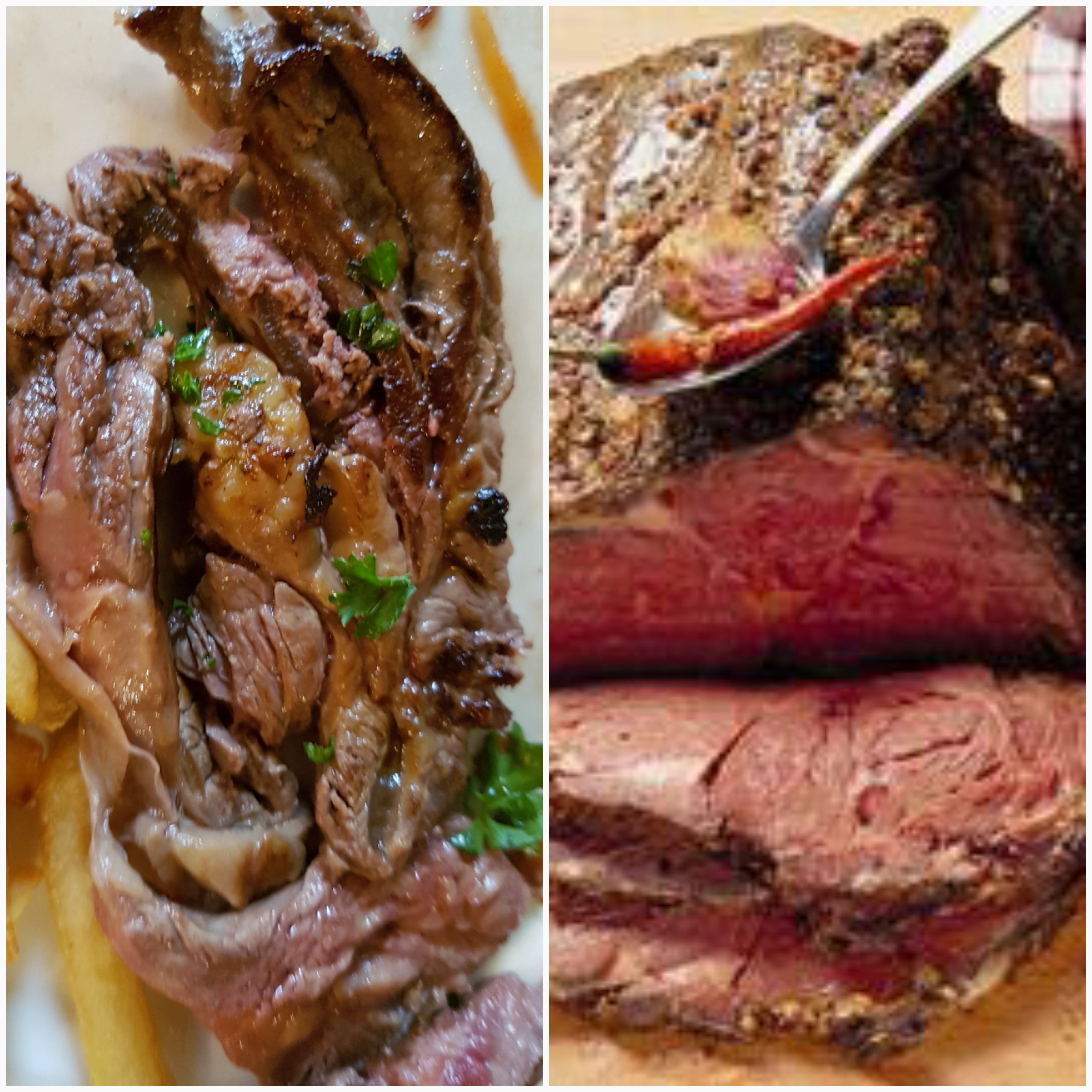Entrecôte commandée, steak de cou reçu, personnel informé, aucune excuse, aucune compréhension ! A gauche l'entrecôte du restaurant, à droite une entrecôte comme il se doit !