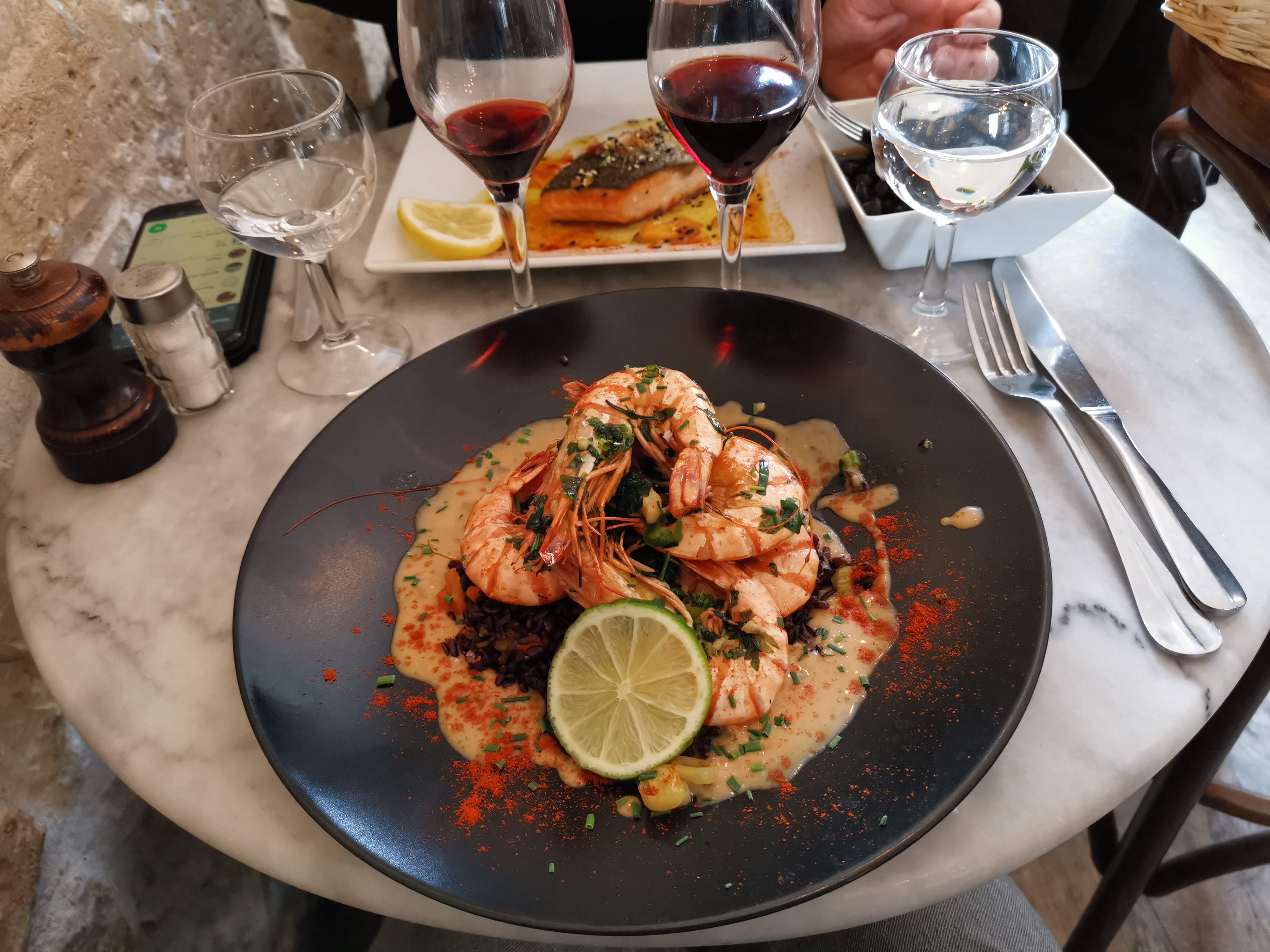 Leurs audaces culinaires (thon avec sauce au bœuf, gambas-riz noir au pastis) ne nous ont pas convaincus. On paye surtout le cadre.