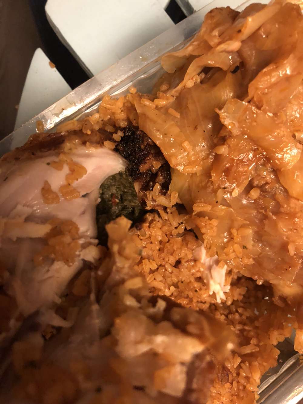 Commande sur deliveroo. Pas de banane plantain, remplacé par autre chose sans avoir prévenu, dommage quand on commande pour les bananes uniquement... Poulet mal vidé, la petite vessie n'a pas été enlevée. Techniquement c'est comestible sans risque mais ça se fait pas dans un restaurant correct et c'est juste dégueulasse visuellement d'avoir un truc vert dans la carcasse comme vous pouvez le voir sur une des 2 photo au milieu... comment vous coupez l’appétit de manger le reste.