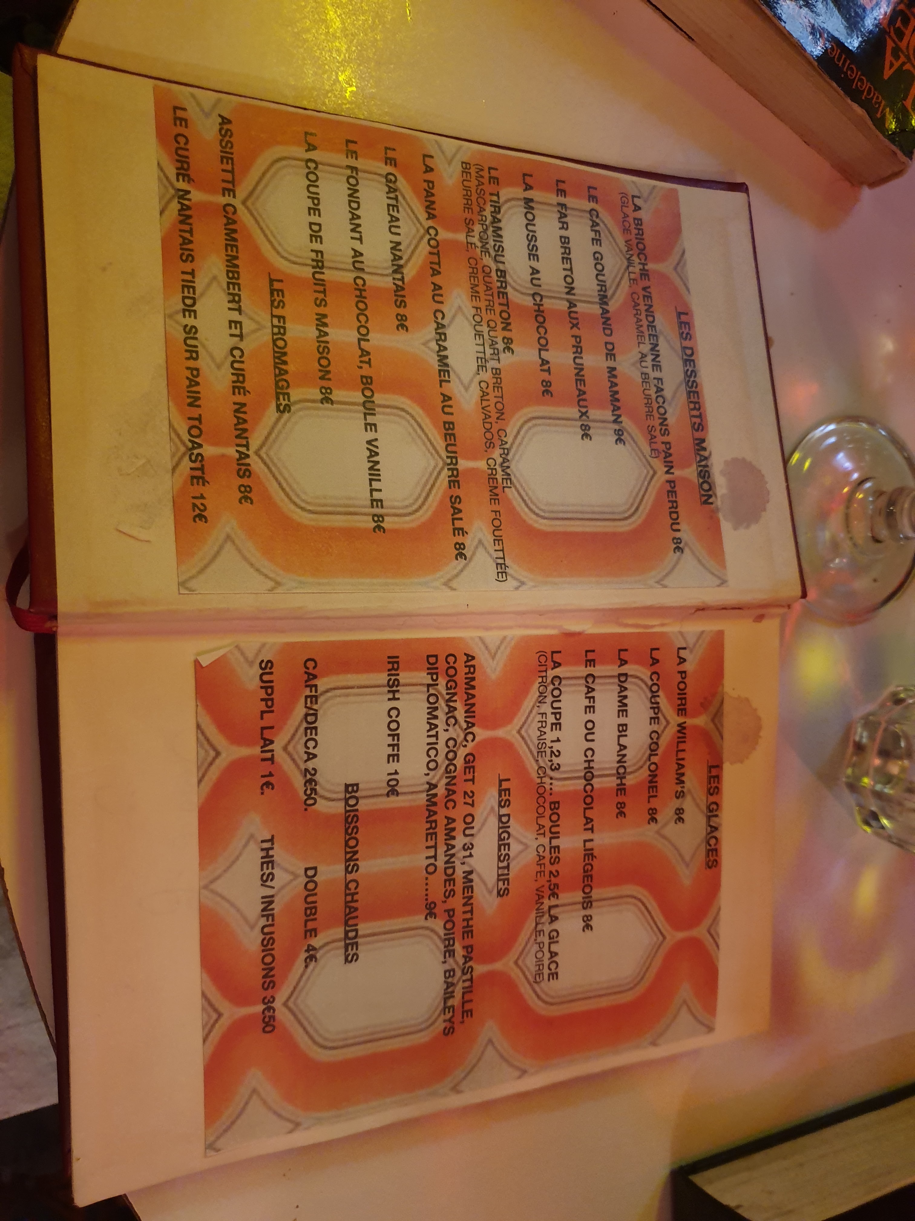 Nous avons très bien mangé à 2 pour moins de 60euros. Les portions sont généreuses et les plats goûteux (mention spéciale au tiramisu breton), le décor est intéressant et l'ambiance y est détendue et chaleureuse. Petite particularité rigolote,les wc sont dans ....une armoire. Si si allez y vérifiez par vous-même!