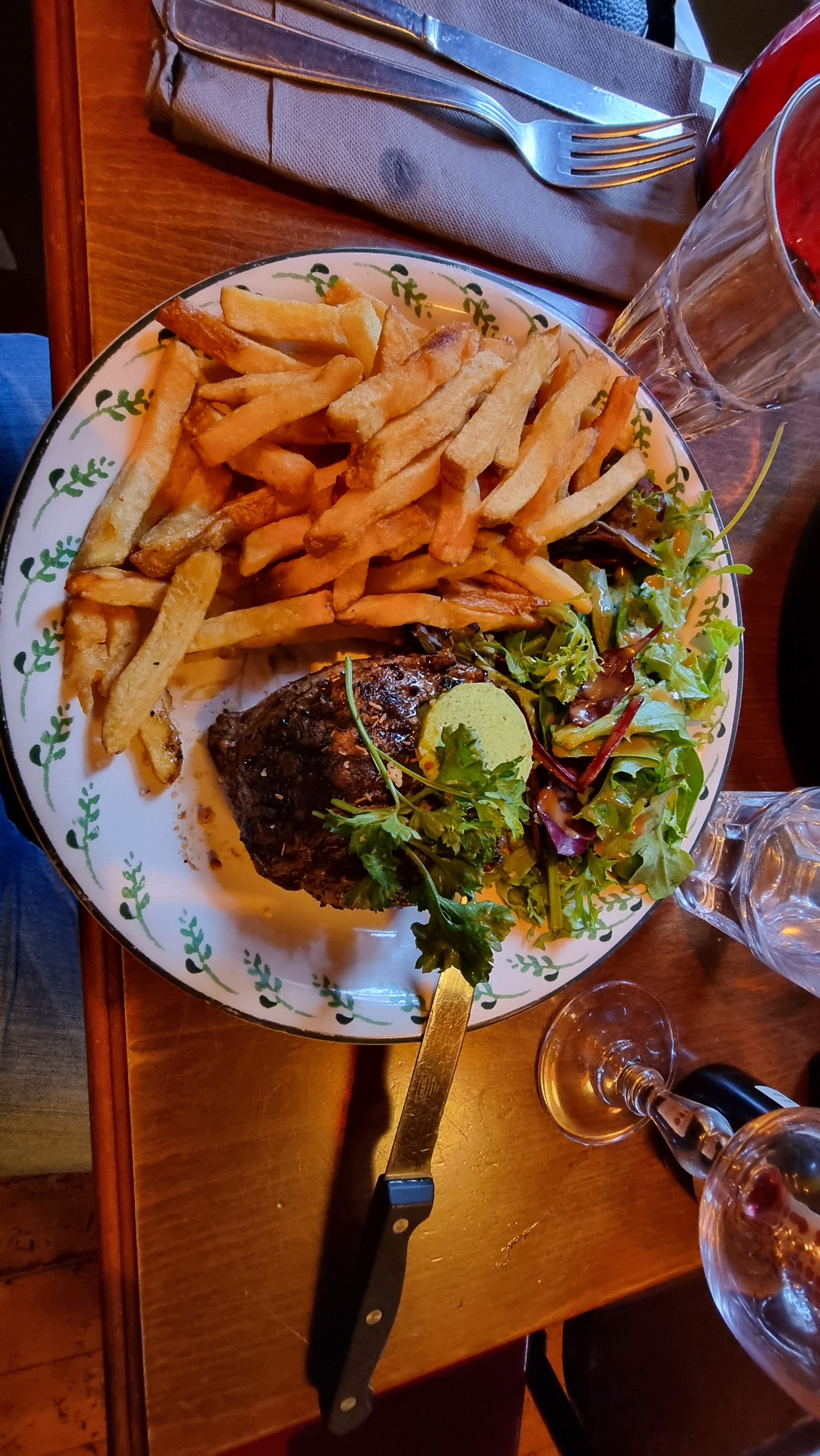 Franchement surprise de ce restaurant, les serveurs sont très accueillants et un d’eux a répondu à nos questions qu’on se posait sur l’ancienneté de ce restaurant et d’où vient le nom. Ne parlons pas des plats ils étaient succulent ! Je vous conseil vivement le rumsteck. Foncez les yeux fermé dans ce resto où on se sent vraiment comme chez soi, déco très attractive, ça fait très maison. Merci pour cette expérience.