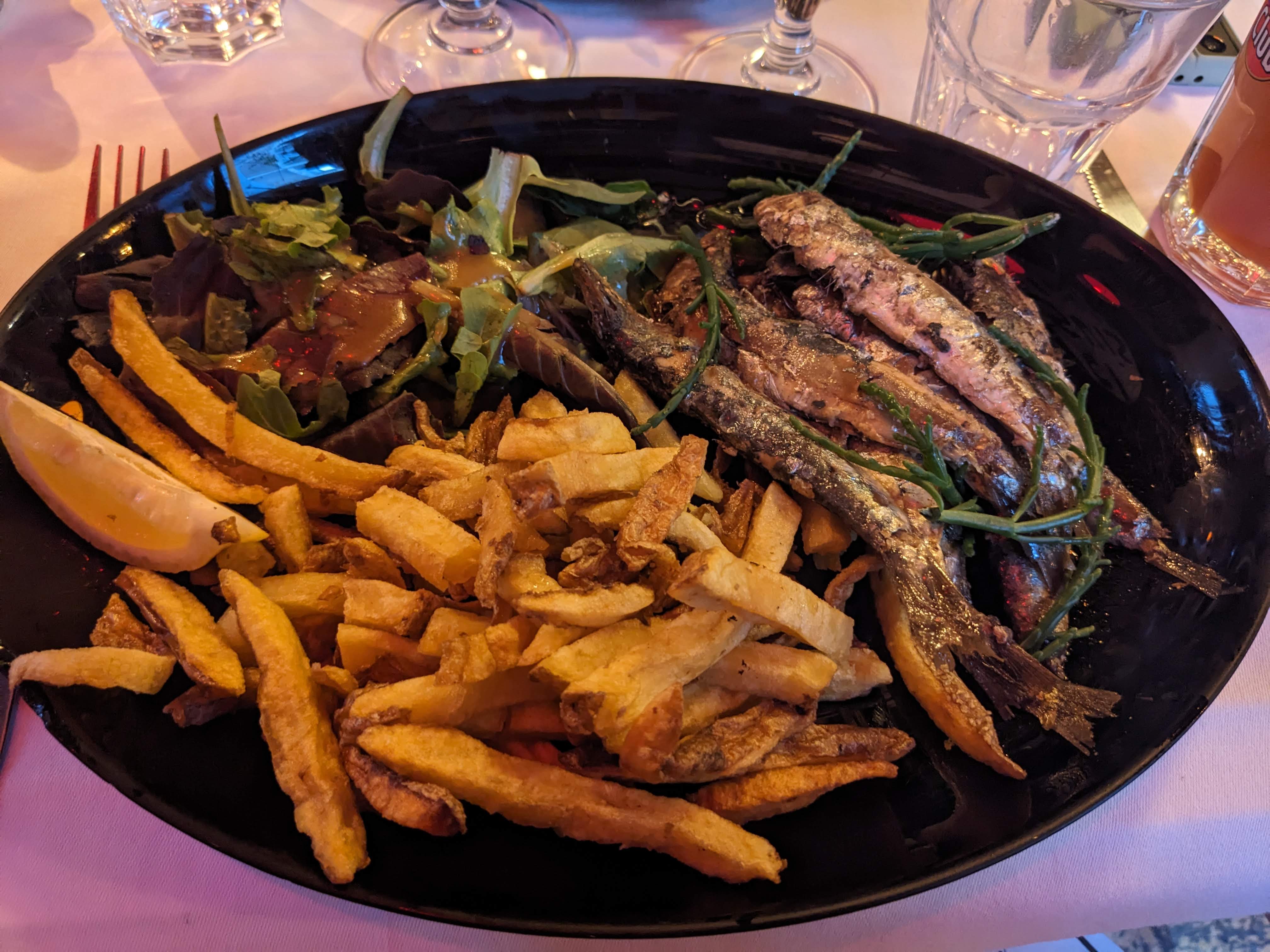 Déco très kitch, très originale et sympathique. Plat du jour très bon : moules frites, service un peu lent le midi. Les tapas d'éperlans très bonnes. Resto à tester