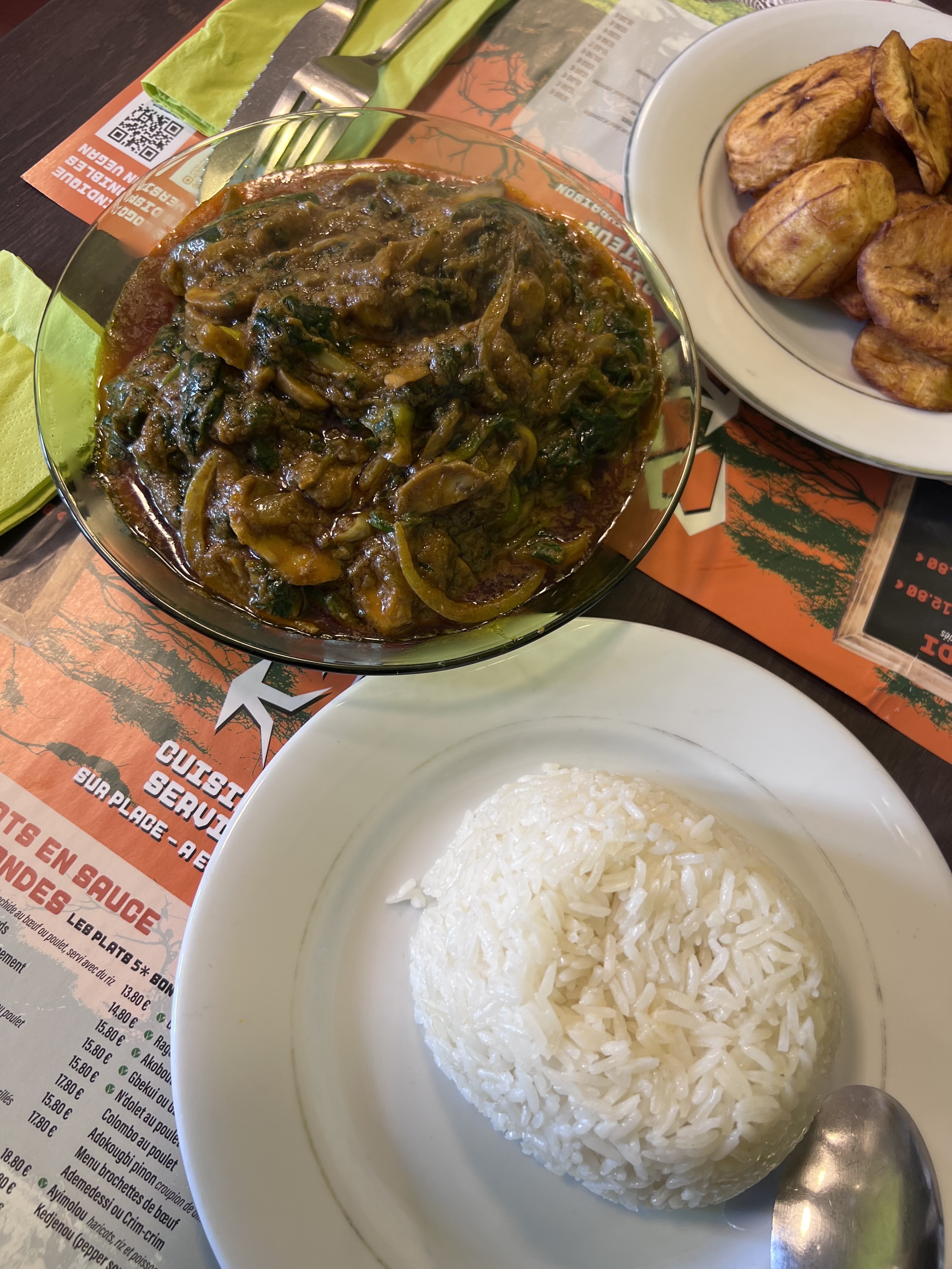 On a passé un excellent moment chez Maman Kibo. Situé dans une rue calme près du centre de Rennes, ce restaurant propose une carte avec des plats provenant essentiellement du Togo et du Bénin, mais pas que. On a été bien conseillé lors de la prise de la commande. De bonnes descriptions des plats et leurs accompagnements. On a pris des mafé de poulet, un gombo et un gbekui. Tout a été parfait et les portions ont été généreuses. L'ambiance du restaurant est calme et chaleureuse. Merci à la directrice et toute son équipe