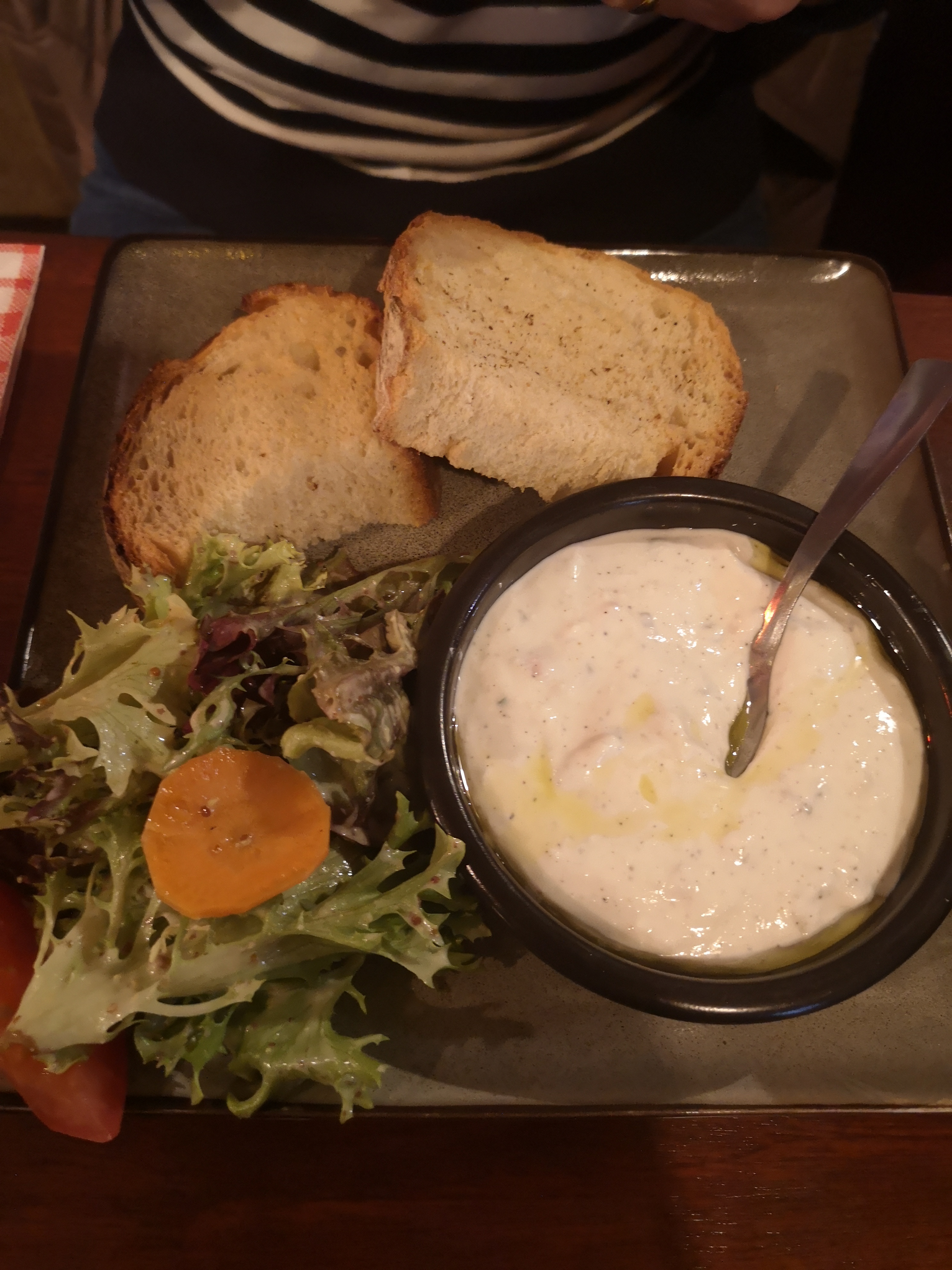 Très déçue, salade lyonnaise à 17€ servie dans une petite assiette, salade tomate/burrata qui n’est en fait qu’une mozza classique 1er prix facturée également 17€… Mon conseil : Passez votre chemin. Trop le sentiment de m’être fait littéralement escroquée. Dommage le personnel est toutefois agréable.