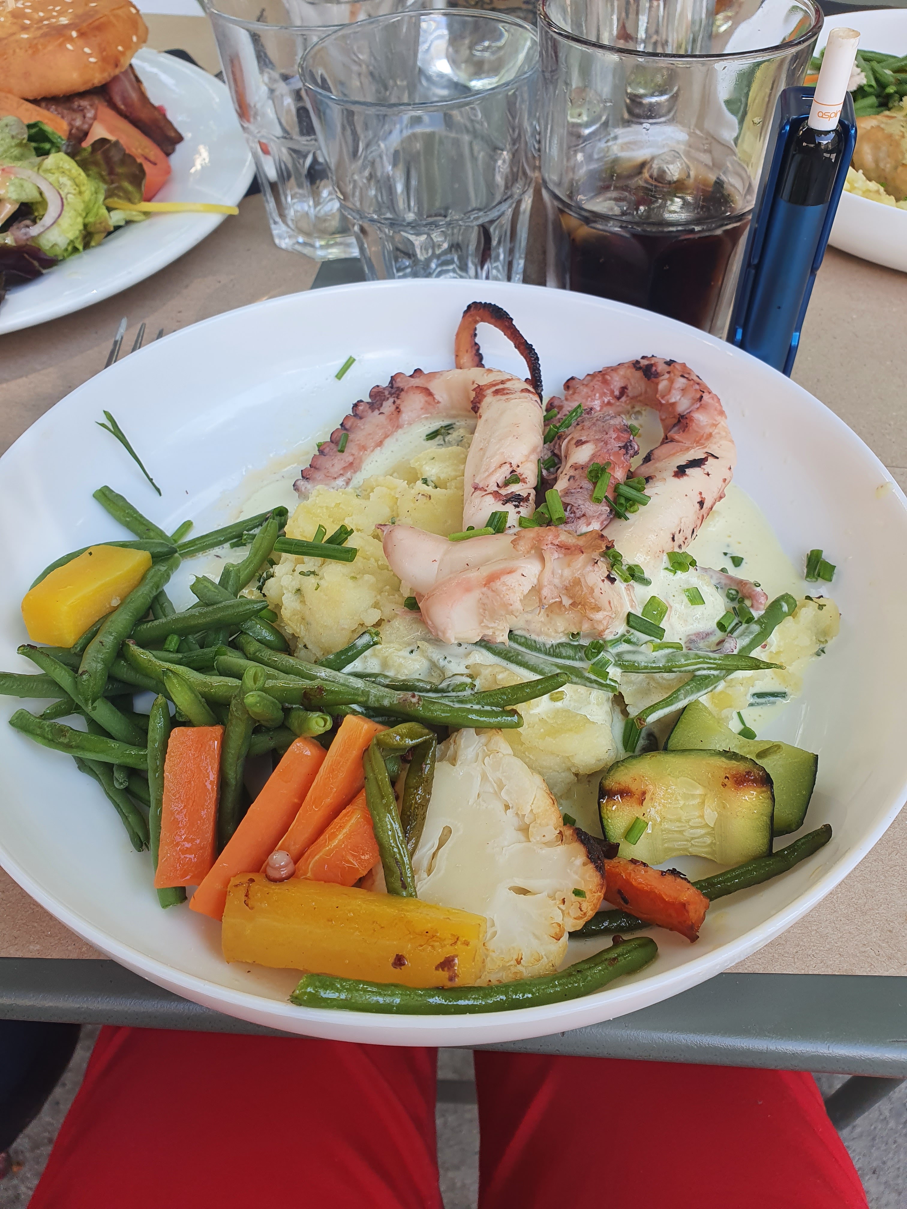 Salade de poulpes et poke bowl sans saveurs (produits il semble très bas de gamme) malgré la facilité de préparation de ces « plats », également chers pour ce que c’est -compter 18€ la salade de poulpes et 17€ le poke bowl-. Cependant je reconnais le service très souriant et l’emplacement près de la fontaine agréable.