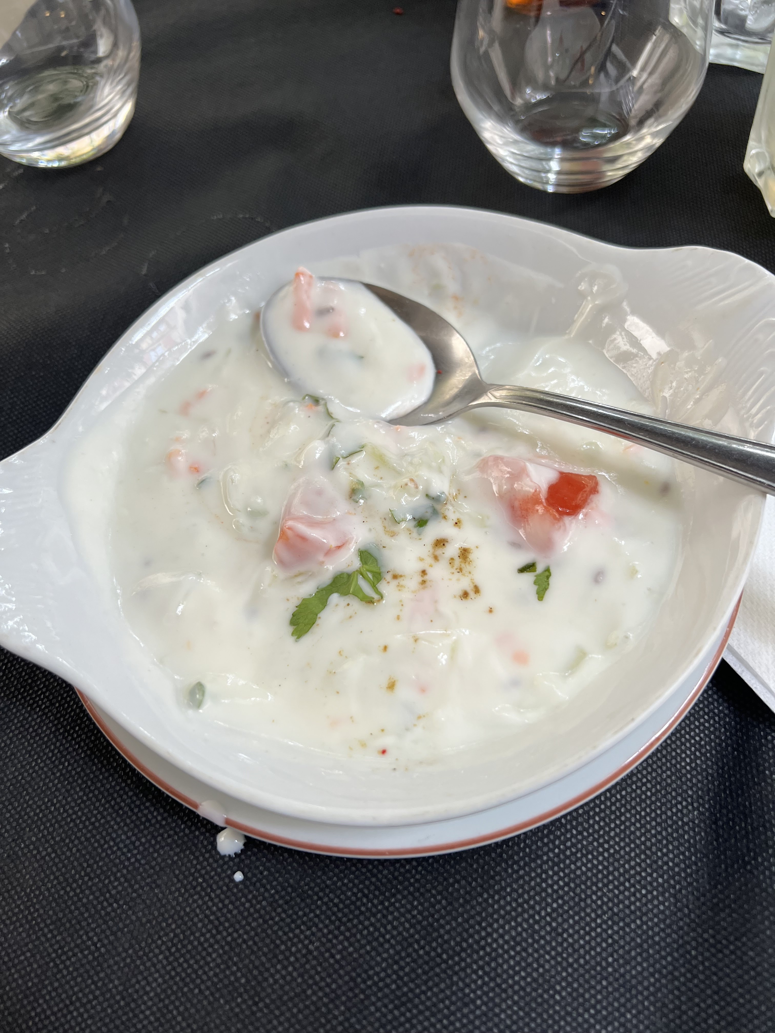 Nous avons trouvé Le restaurant par hasard mais il a été une très bonne surprise. Le service est impeccable: les serveurs sont très polis, le menu à 20€ est d’excellente qualité, le cadre extérieur dans la terrasse est agréable. Nous avons goûté la soupe aux lentilles et le samossa en entrée, puis un butter chicken et un mutton HYDERABADI comme plat principal, plus un pain au fromage, et pour finir le gâteau de semoule et une salade de fruit en dessert. Tout a été très savoureux, des bonnes proportions. Nous y retournerons!