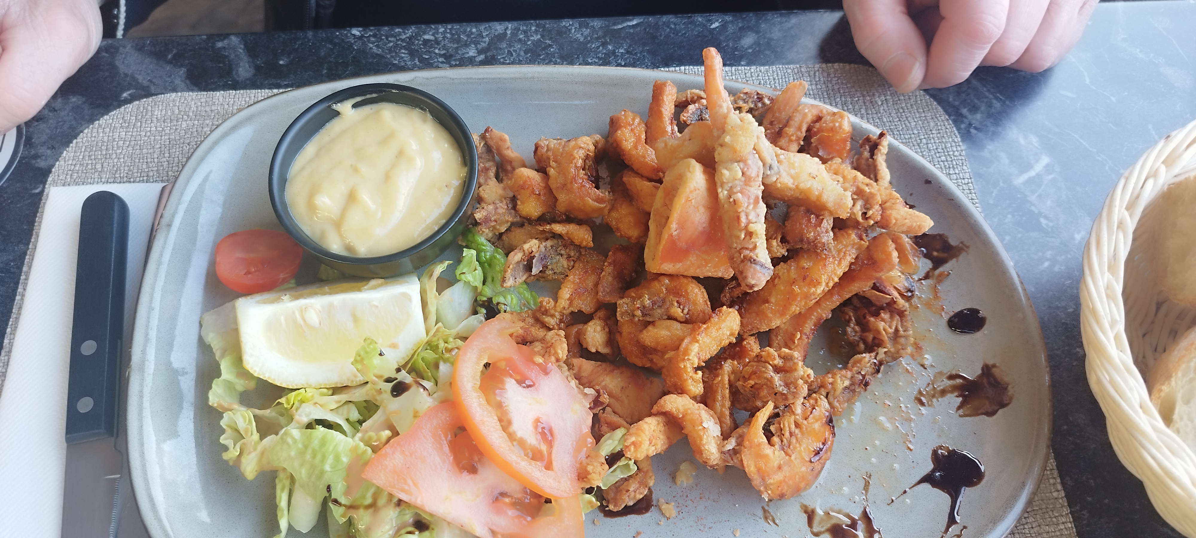 Repas de fritures trempé dans l'huile et caoutchouteux, n'avons pas aimé malgré un personnel gentil