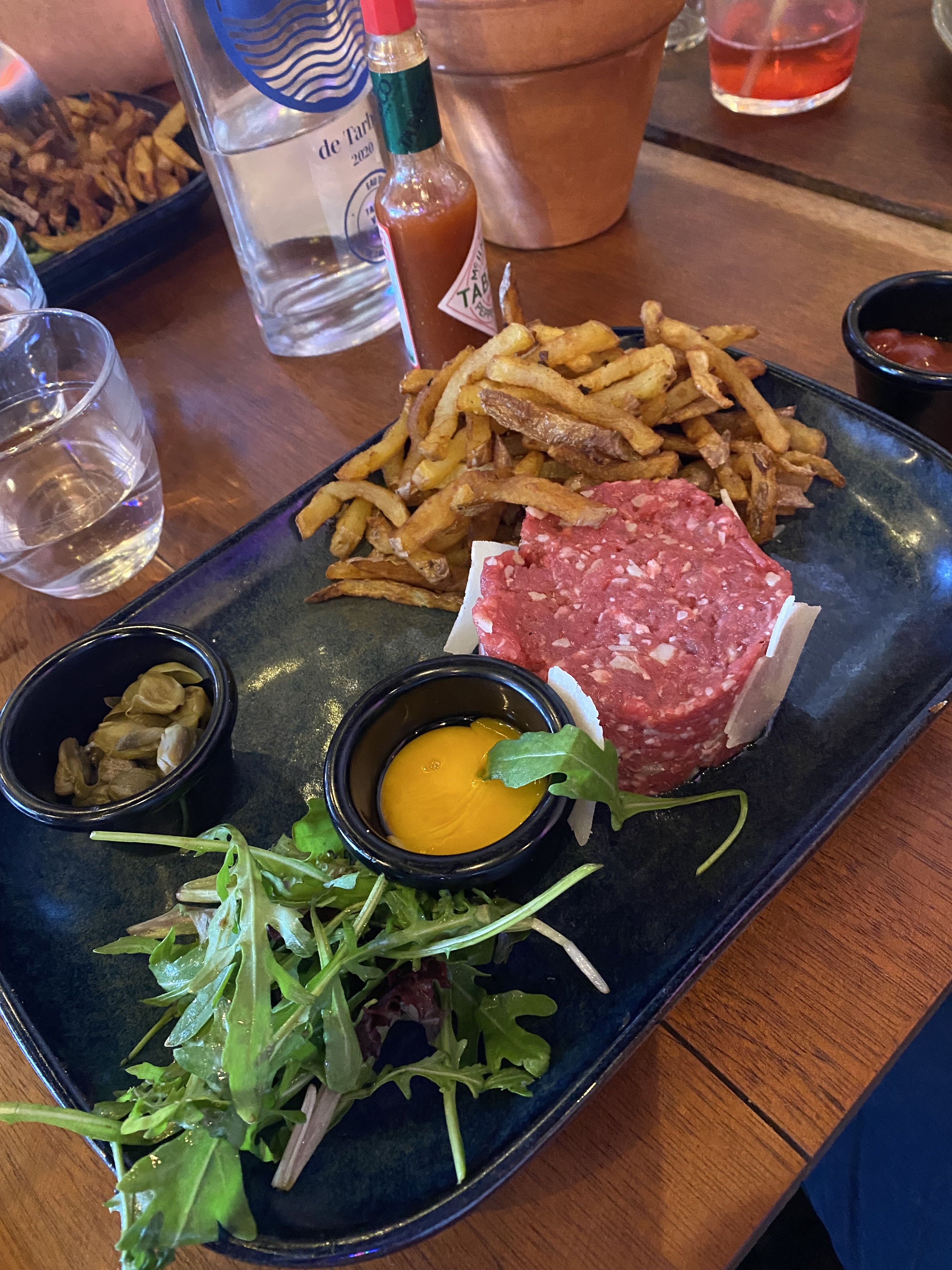 Je ne recommande absolument pas ce restaurant surtout si vous venez manger un tartare de bœuf, je vais vous donnez plusieurs raisons : premièrement ce plat est extrêmement fade, pas salé ni poivré, quelques copeaux de parmesan sans goût bref sans intérêt; deuxièmement si vous voulez finir « tranquillement » un livre aux toilettes… je vous conseille ce plat.