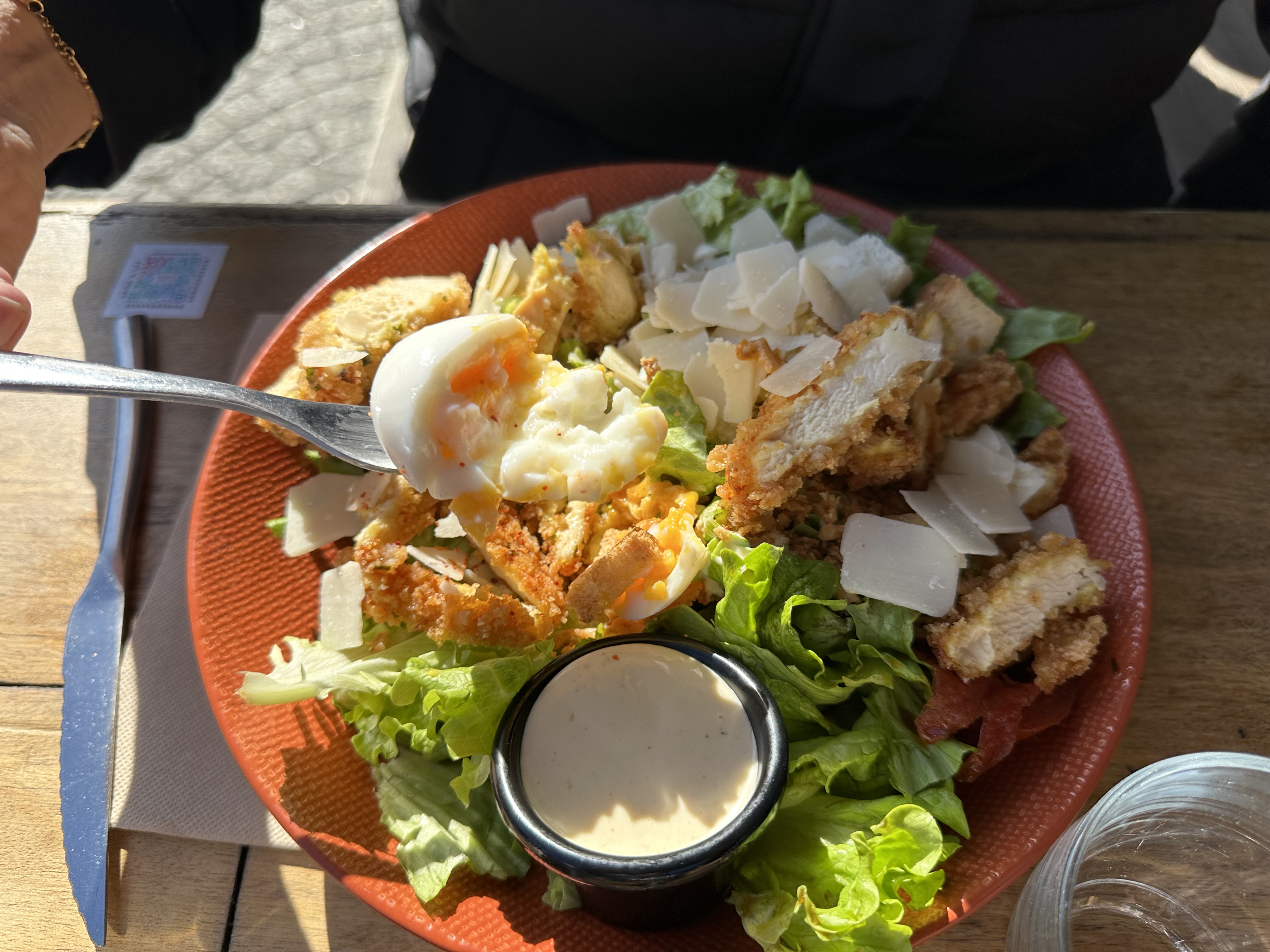 Meilleure salade césar goûtée, copieuse, poulet pané très bon et moelleux, sauce goûteuse