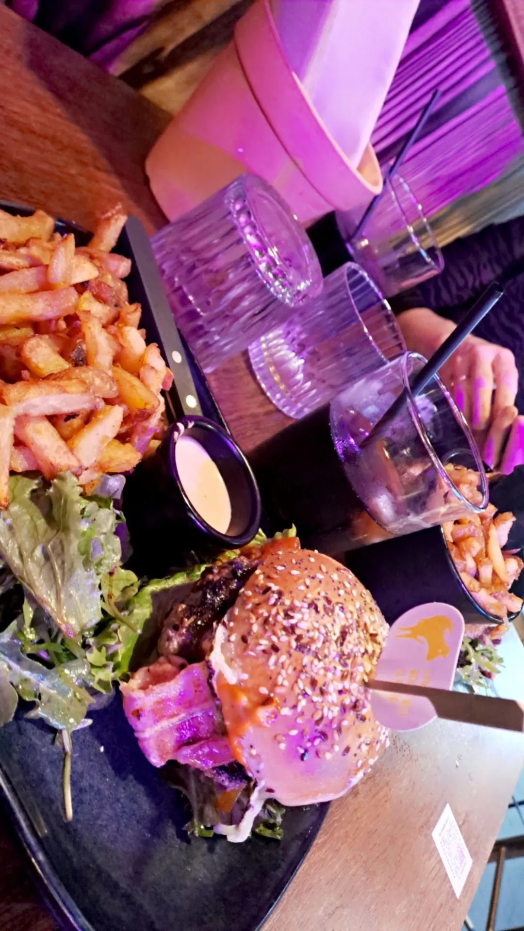 Une expérience mitigée. Le cocktail était délicieux, les frites maison étaient excellentes, mais le pain du burger était trop sec et la viande trop cuite malgré ma demande de saignant. Les autres ingrédients étaient savoureux.