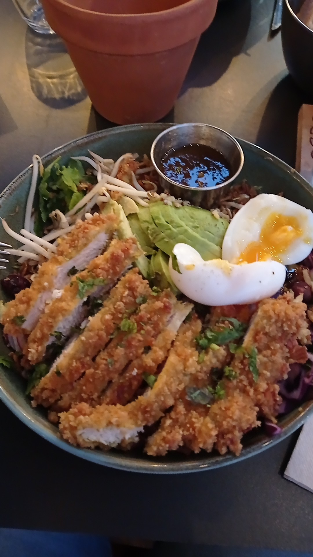 Réservation sur le site, Du choix Très bon, copieux, prix raisonnables Serveuse souriante Bonne ambiance Par contre il faudrait penser à renouveler la vaisselle… bowl servi dans une assiette plus qu ébréchée