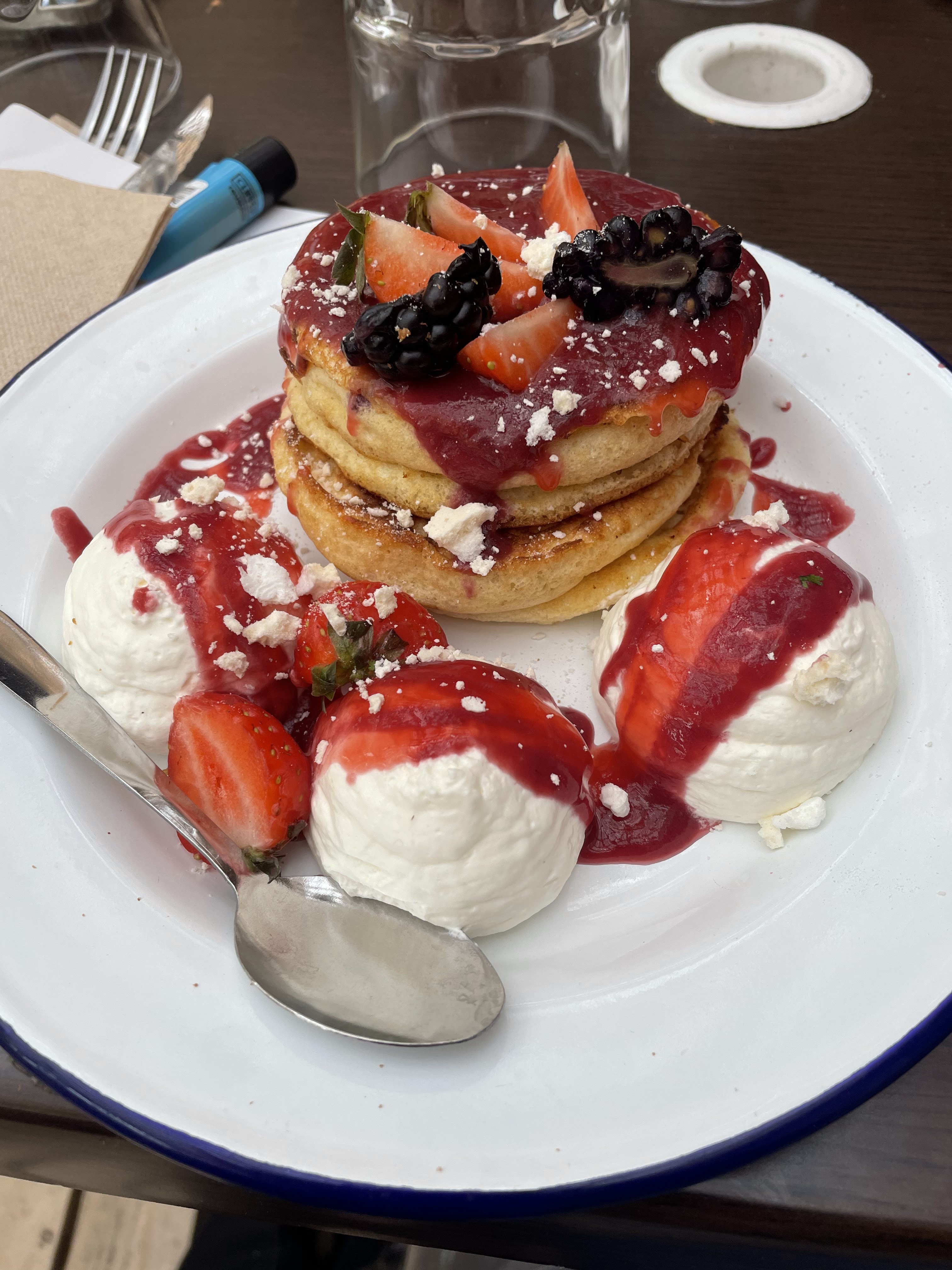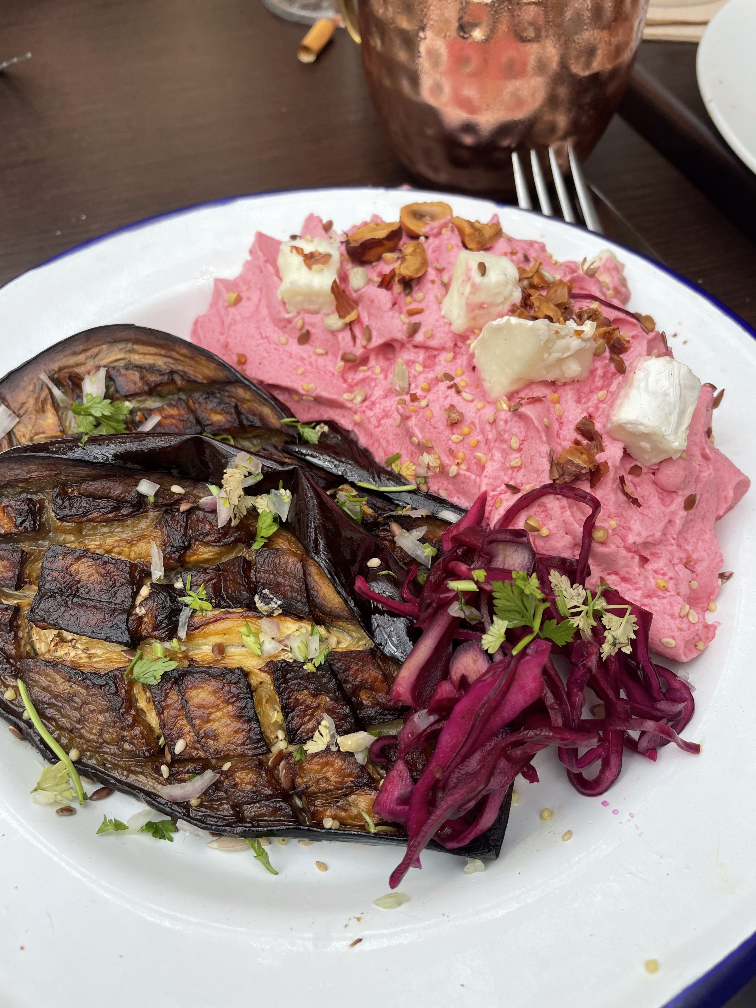 Une belle découverte. Nous sommes venus pour le brunch du samedi. Un peu rapide parce qu’ils avaient un mariage juste après mais nous avons pu nous régaler en moins d’une heure. - aubergines confites, mousse de betterave 🍆 8€ - pancakes aux fruits rouges 🥞 6€ - rolls pull pork 🥓 11€ - pain perdu coulis caramel 6,5€ Globalement très bon ! On recommande vivement les cocktails avec ou sans alcool 🍸 Les pancakes étaient un peu secs mais la chantilly ramène de l’onctuosité 🤗