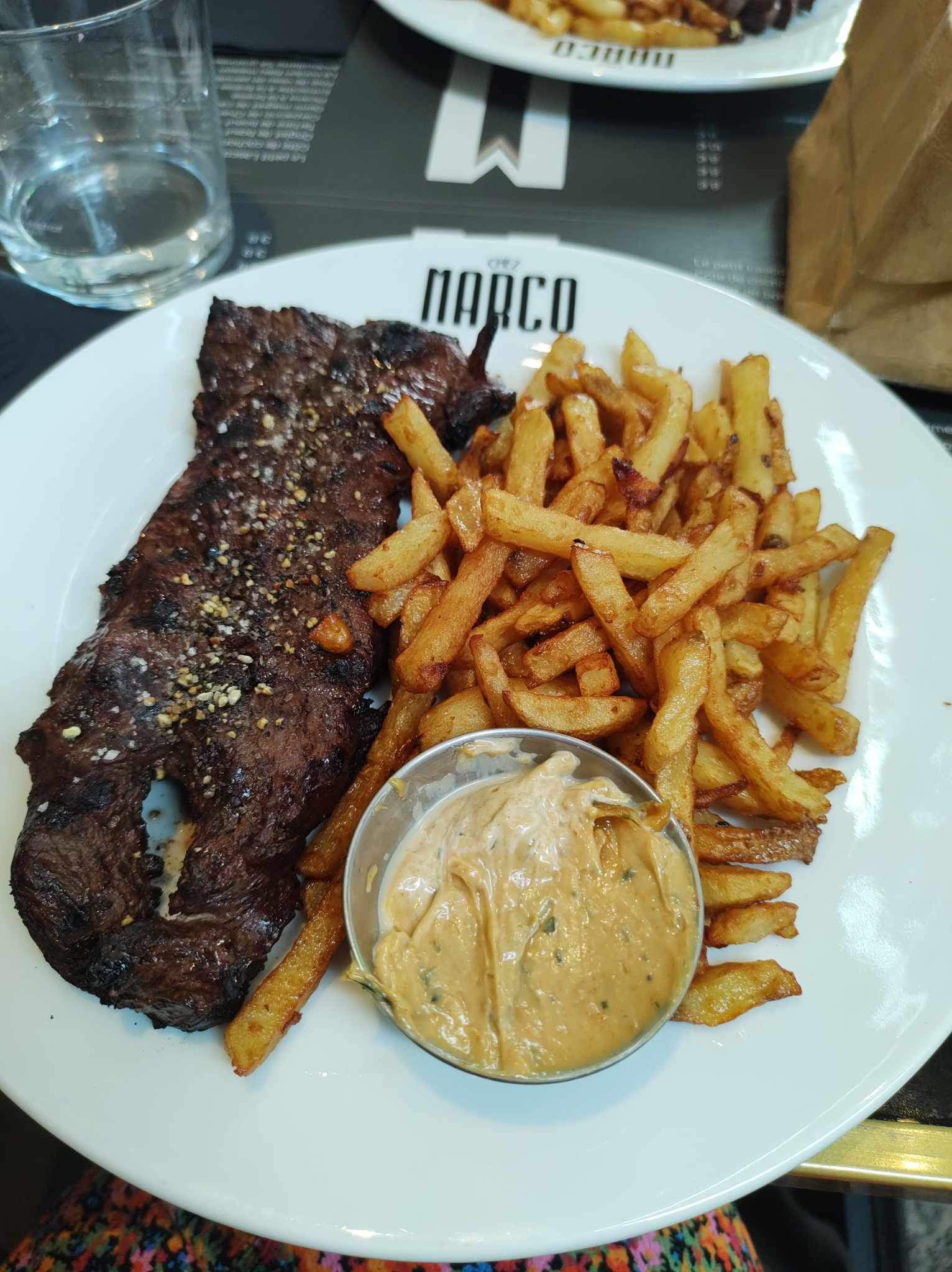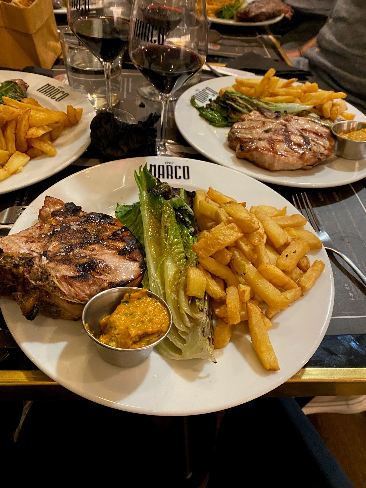 Chez Marco, on mange bien. On mange de la bonne viande. On boit de bons cocktails, avant d'enchaîner sur du bon vin. Puis le service est chaleureux aussi. Il est souriant, attentionné, empli de bon conseils (écoutez le parler de son vin🍷). Chez Marco on passe de bons moments. On rit, un peu grâce au bon vin, on papote, on se regarde dans les yeux... Avant de regarder son assiette ! Chez Marco on mange bien. Allez chez Marco.