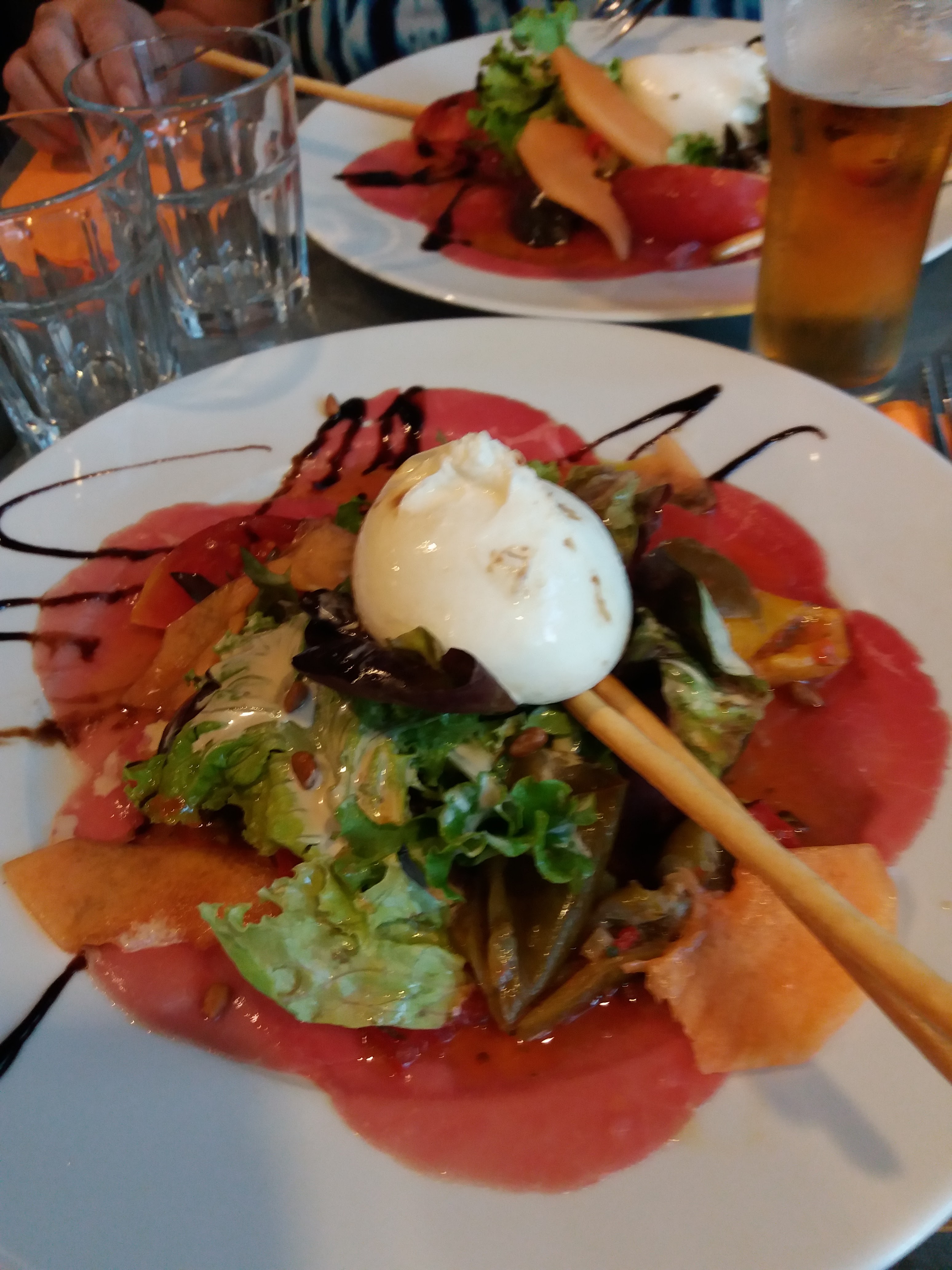Salade césar re visitée??? un poil fade, des tomates sans goût qui n'ont rien à faire là. Dommage Ravioles très peu assaisonnées, encore dommage. De plus une présentation à la crème de balsamique un peu too much... Rapport qualité prix bof bof... Malgré tout, une serveuse efficace qui rattrape le manque de saveurs