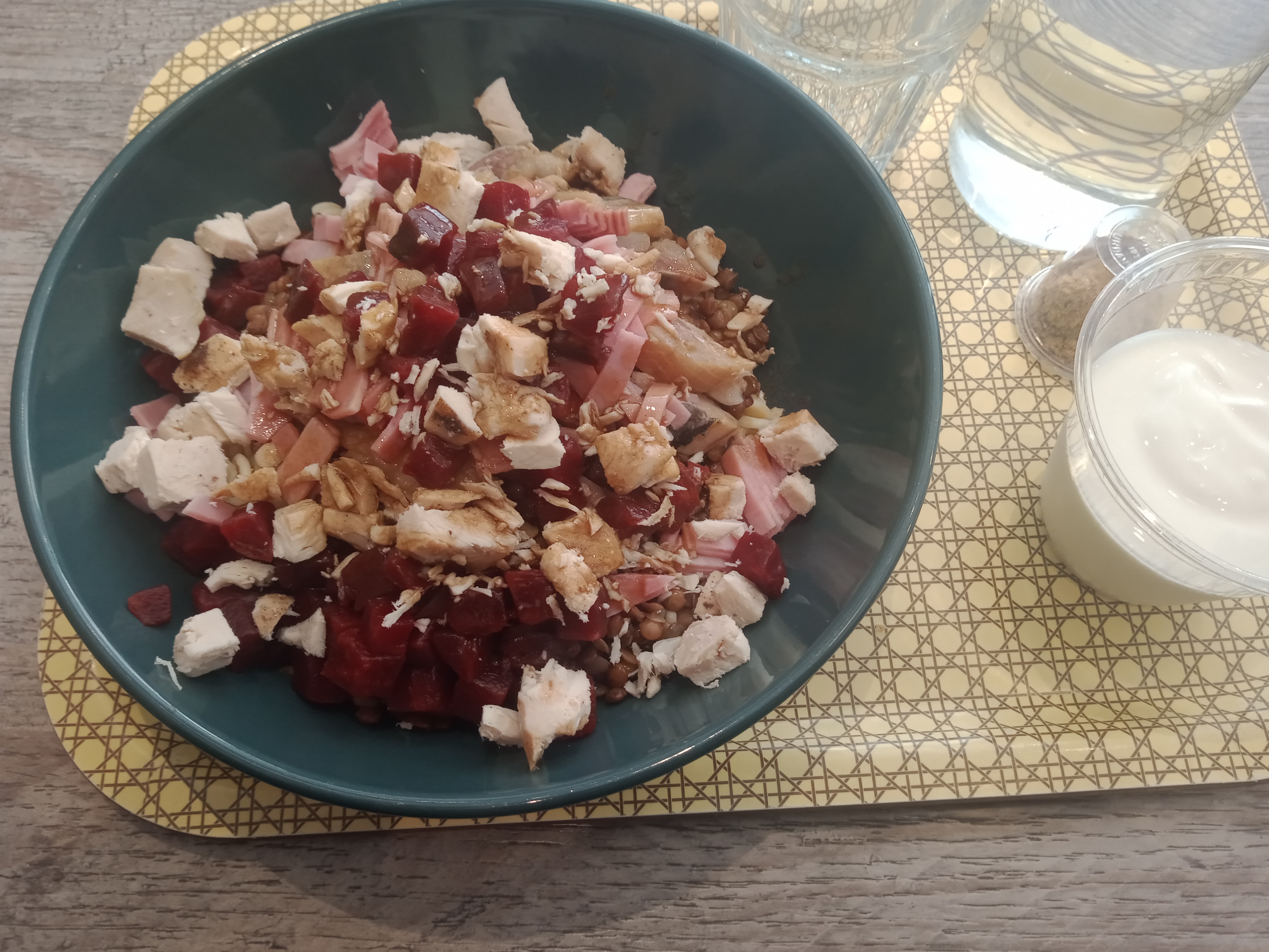 Accueil toujours au top... salades avec des produits frais... très bien.... et desserts a côté desquels j ai du mal à résister (flan rhum/nectarine ce midi 😜) Bémol : parmi les ingrédients au choix, j aimerais bien trouver un 'ingrédient de la semaine' qui serait un ingrédient de saison...